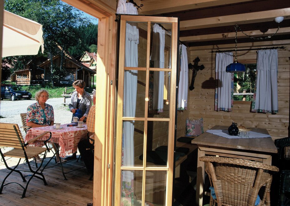 Außerdem großer Wohn- und Essbereich mit zwei "Faulbetten" zum Ausruhen nach anstrengendem Wander- oder Skitag. Ein Fernseher mit Satellitenempfänger und eine kleine Stereoanlage sorgen für Abendunterhaltung. Kinder können auch mal ihre Lieblings CD einlegen. Falls sie Gesellschaftsspiele lieben – im Schrank über dem Fernseher haben wir ein Spiele deponiert.