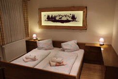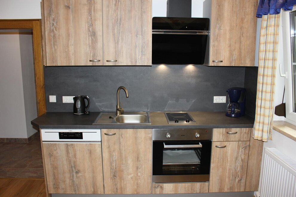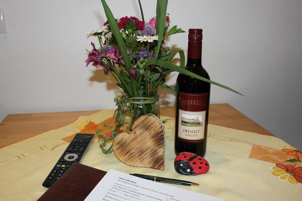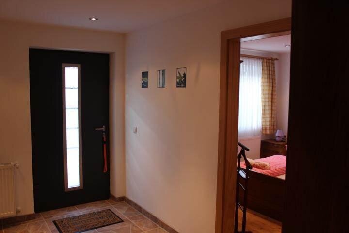 Unsere Ferienwohnung ist 2012 neu errichtet worden. Sie besteht aus einem neuem Bad mit Badewanne, WC, Bidet, einem großen Schlafzimmer, großer Vorraum, Küche mit netter Essecke und gemütlicher Ausziehcouch für 2 Personen. In der Küche befindet sich ein Geschirrspüler, Mikrowelle, kleines Kochfeld, Wasserkocher, Kaffeemaschine, Kabel TV, Gitterbett, Hochstuhl für Babys, Handtücher und Bettwäsche vorhanden, jeden Morgen frisches Gebäck, auf Anfrage hauseigene Sauna mit WC und Dusche, für das Auto steht ein Carport zur Verfügung. Es ist eine Nichtraucherwohnung.