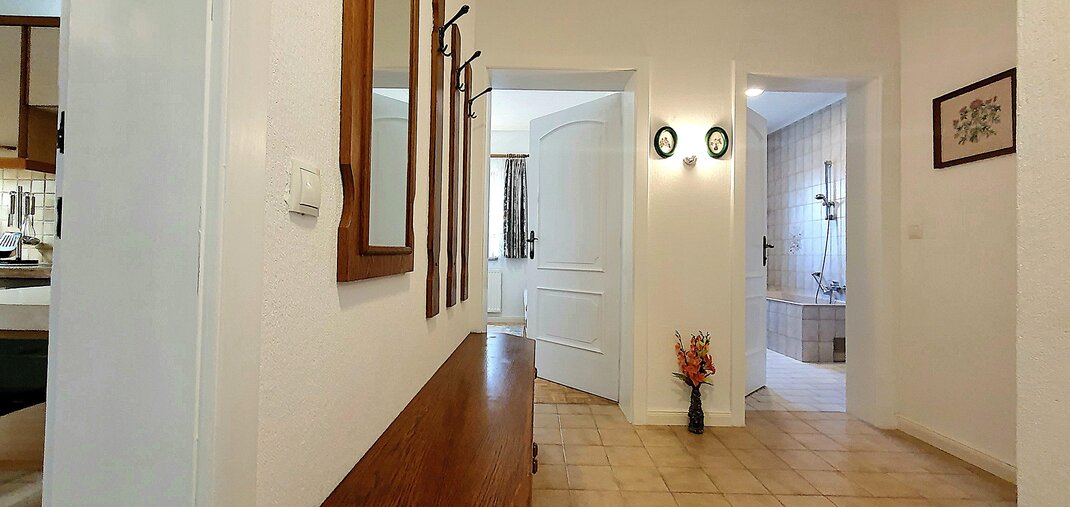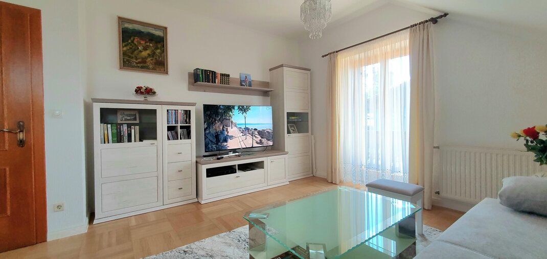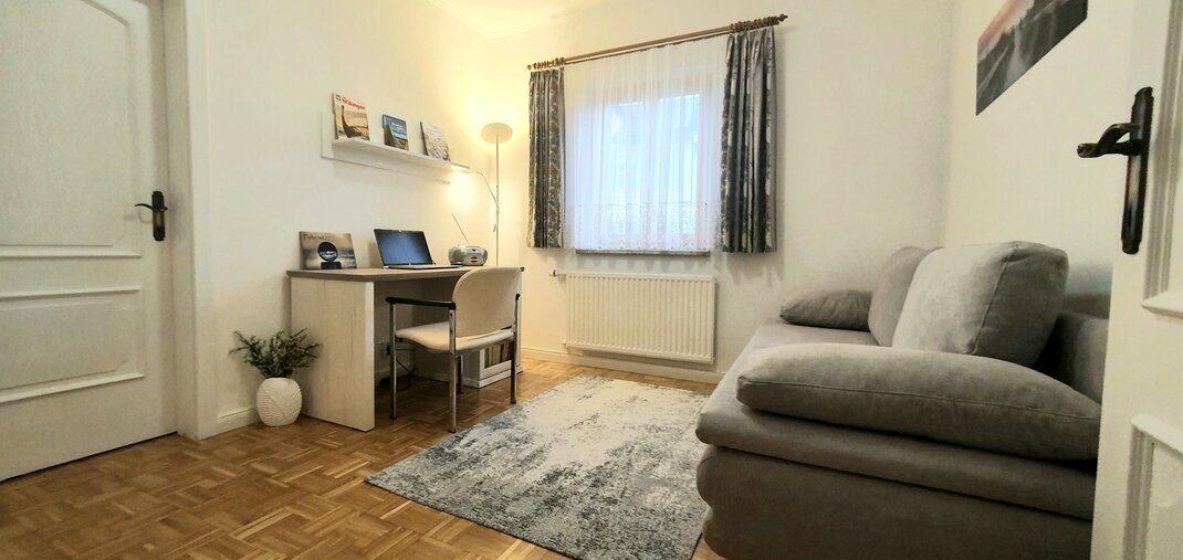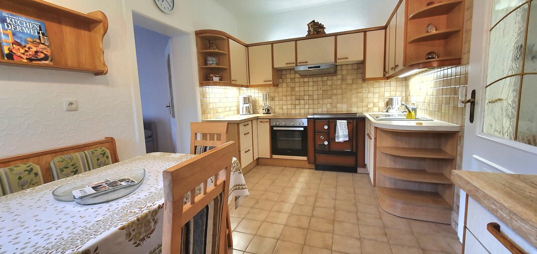 Das Haus bietet im Erdgeschoß eine neu und modern eingerichtete Ferienwohnung (75m2) für bis zu 5 Personen Platz: Wohnzimmer, Kinderzimmer, Schlafzimmer und gemütliche Wohnküche mit Tischherd, großes Bad mit Dusche und Waschmaschine. WC ist separat.