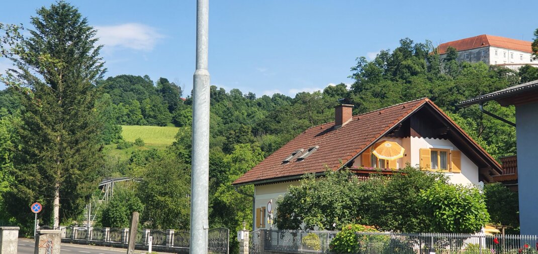 Der Murradweg R2 geht direkt an unserem 3000m2 großen Anwesen vorbei. Das gesamte Grundstück ist eingezäunt und somit für den freien Auslauf von Haustieren bestens geeignet. Enten, Graugänse und Hühner sind bei uns gern gesehene Dauergäste.