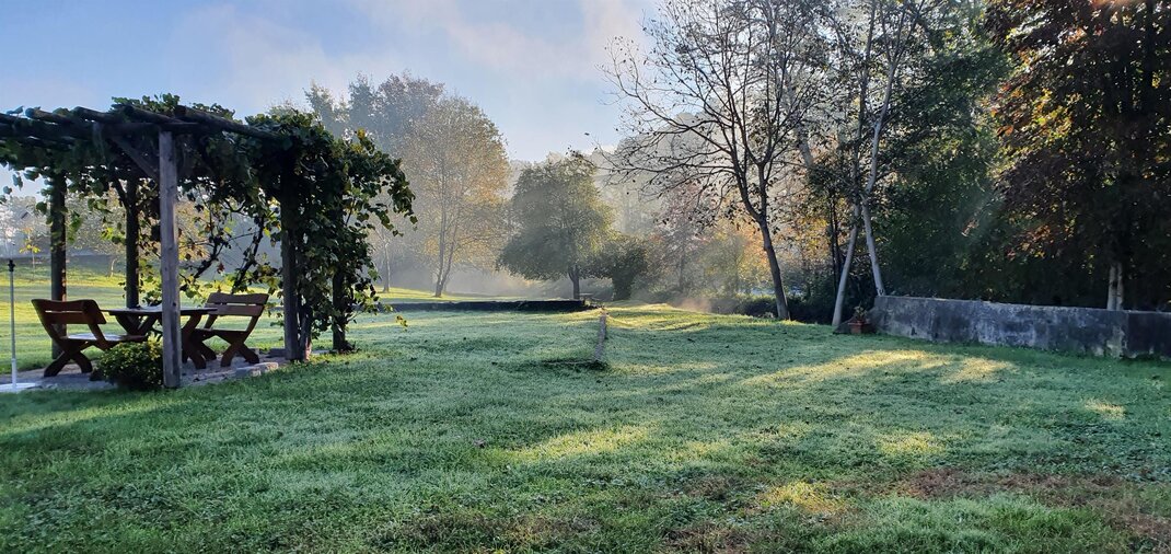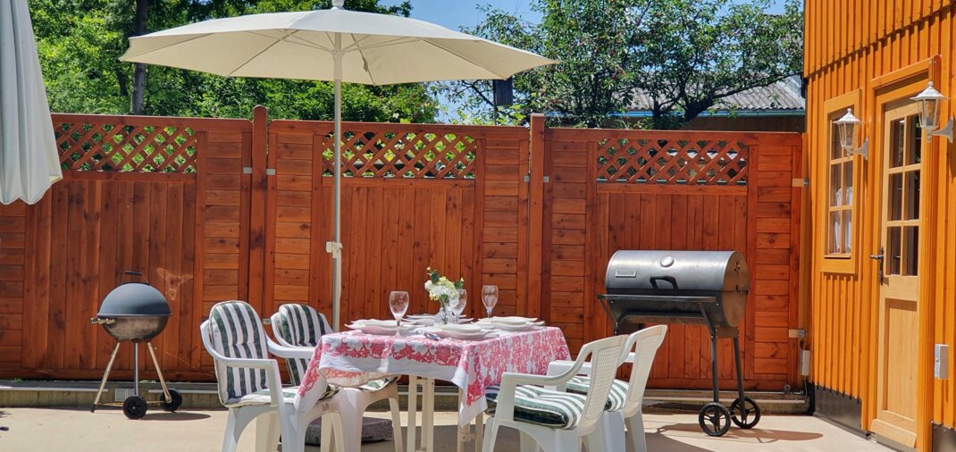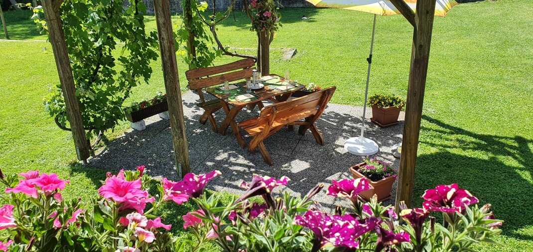Der große Garten mit Grünfläche bietet Platz für gemütliche Stunden unter der Weinlaube bei einer Brettljausen. Verbringen Sie erholsame Stunden auf unserer überdachten Mühlbachterasse mit Griller und Kühlmöglichkeiten für Getränke etc. Auf Wunsch ist auch Waffelbacken für Kinder möglich. In der Einliegerwohnung im Untergeschoß befindet sich eine große Historische und Populärgeschichtliche Hausbibliothek.