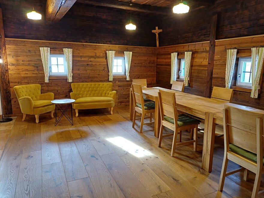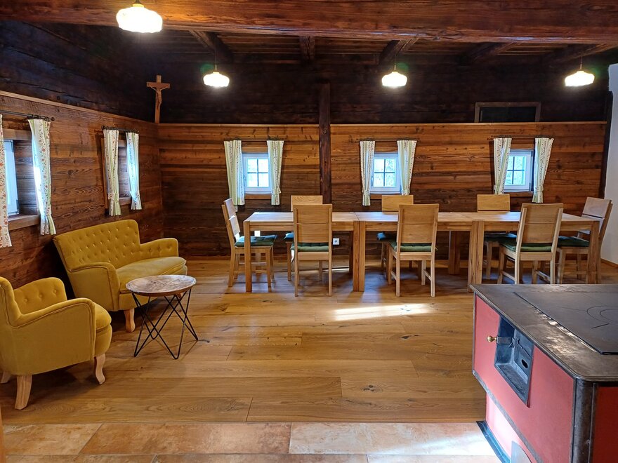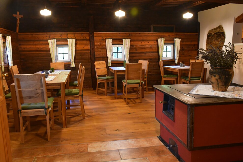 Im alten Bauernhaus blieb das besondere Flair der Rauchstub‘n mit beindruckenden alten Holzelementen erhalten, im Tischherd können wir noch das Feuer zum Knistern bringen. Feiern, Sinnieren, Essen oder Spielen - in der Stub‘n kommt familiäre Gemütlichkeit auf.
