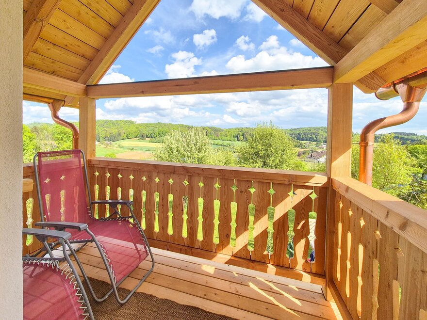 Ebenerdige Ferienwohnung mit komplett ausgestatteter Wohnküche (Geschirrspüler, Backrohr, 4 Platten, Kaffeemaschine, Teekocher, Mikrowelle), Esstisch für 4 Personen, Doppelzimmer, Zweibettzimmer, Du/WC. Gesamte Ausstattung mit Massivholzmöbel.