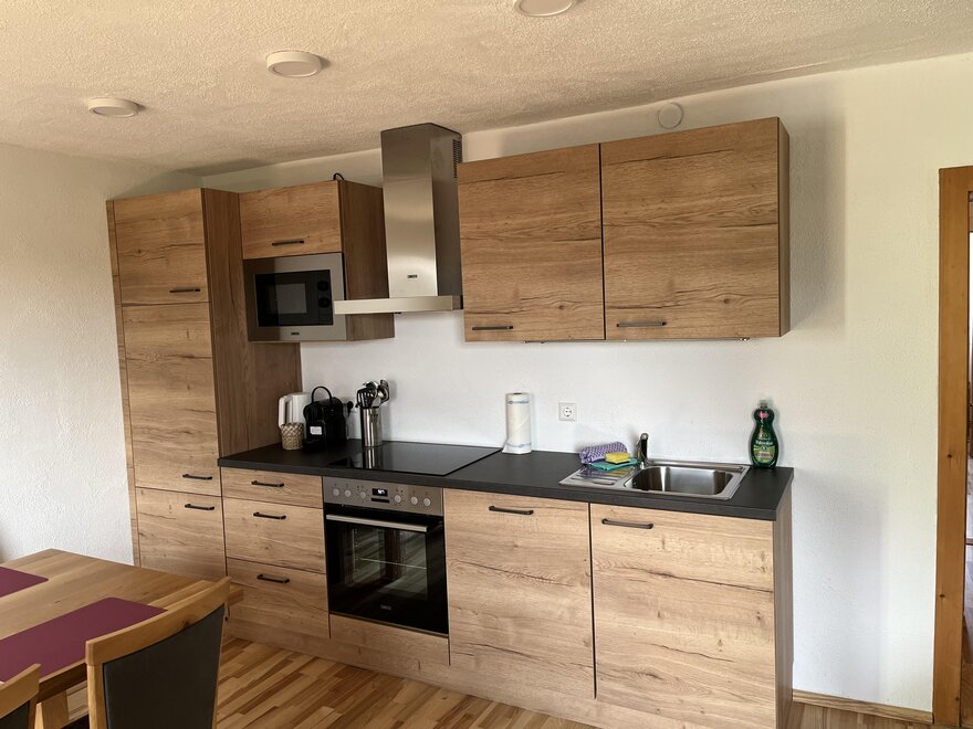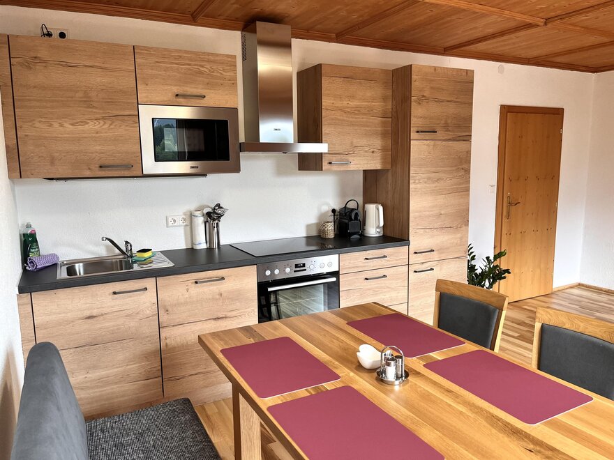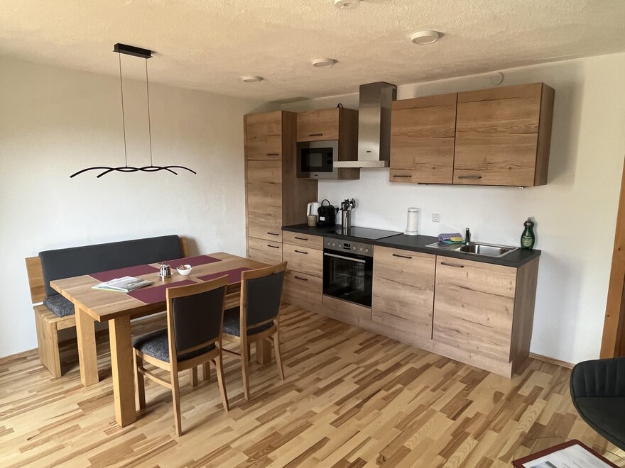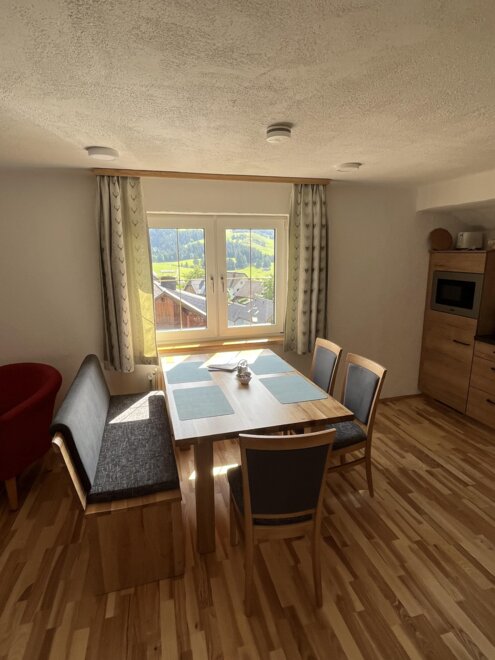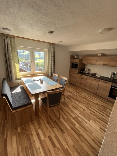 Our modern and fully equipped holiday apartments offer space for up to 4 people and impress with a comfortable living area, a high-quality DAN kitchen, and a sunny balcony with a breathtaking view of the picturesque mountain village and the imposing Grimming.