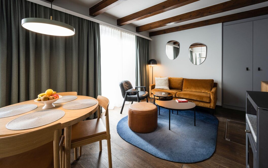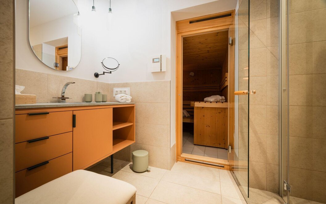The design of the Elfenhaus combines natural materials with modern elements, creating a one-of-a-kind atmosphere. Particularly sustainable: electricity from an in-house photovoltaic system, hot water generated by solar energy, and fresh mountain spring water reflect the eco-conscious concept.