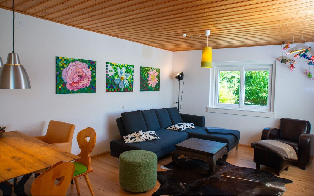 Very sunny, quiet location with garden, close to the lake, lake view, free parking directly at the house, e-charging station (in case of emergency), storage room for bicycles and skis.
