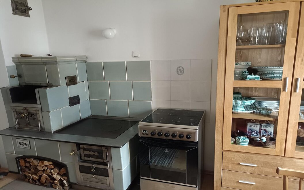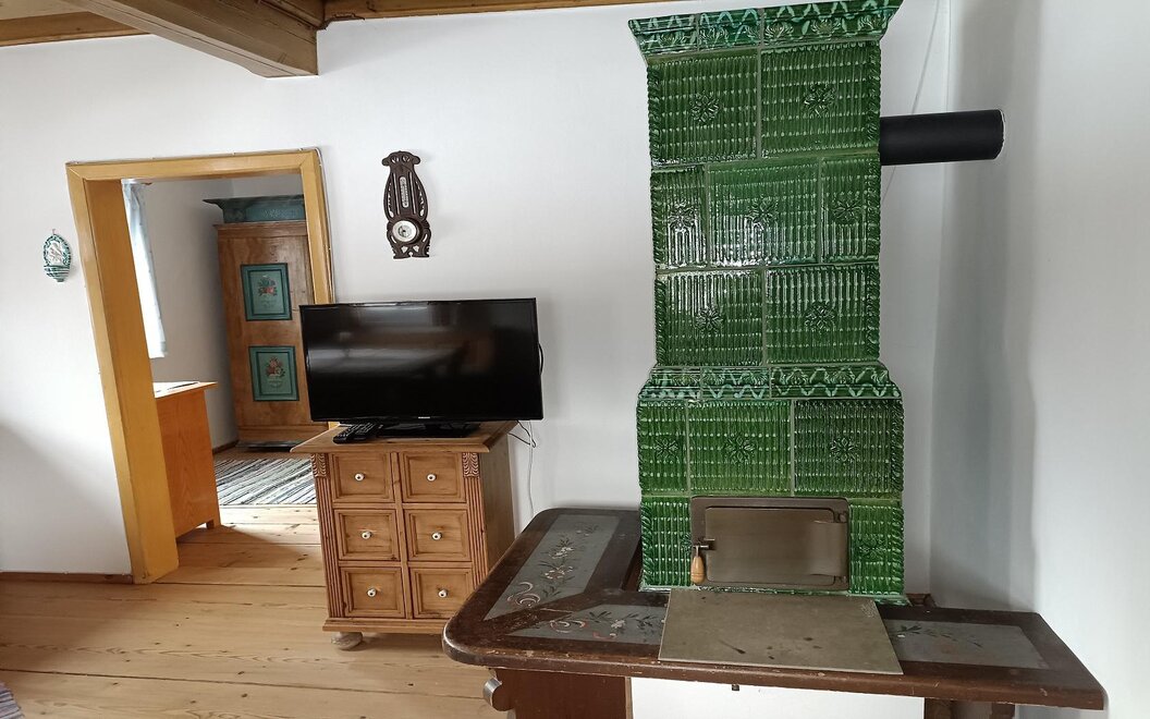 Accommodating up to four people, the house features a functional, traditional interior, preserving the charm of a classic holiday home. The traditional tiled stove creates a cozy atmosphere, making the house especially comfortable on cooler summer nights. Here, modern design takes a backseat in favor of a simple yet functional setup, highlighting the charm of a classic countryside retreat.