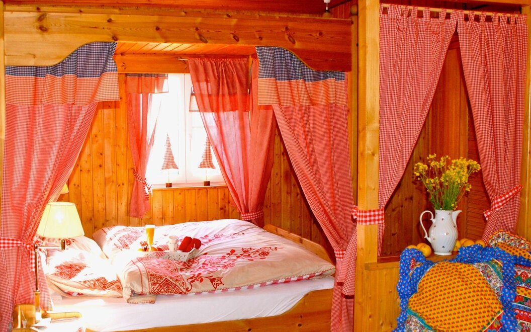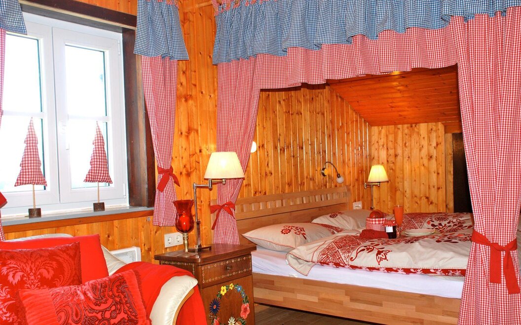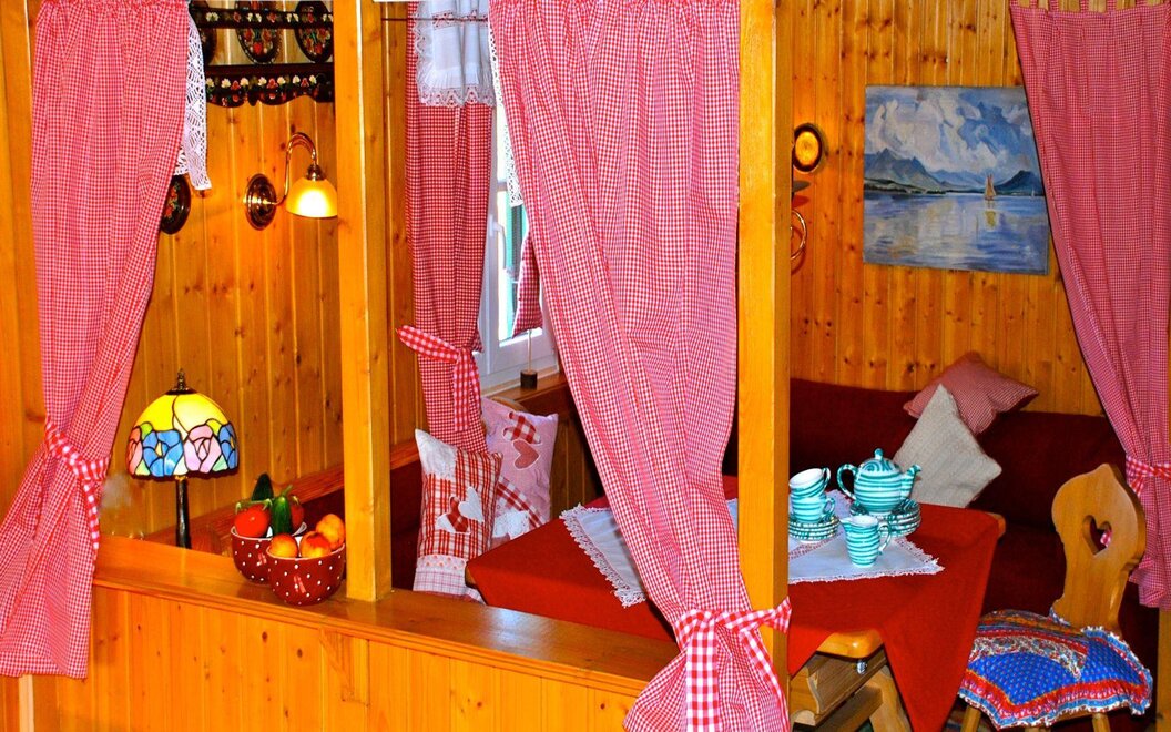The lovingly furnished apartments have four-poster beds, painted farm chests, real carpets and cozy seating areas. The valley station of the mountain railroad to the ski area is only 150 meters away. In summer, the accommodation is an ideal starting point for hiking and cycling tours.
