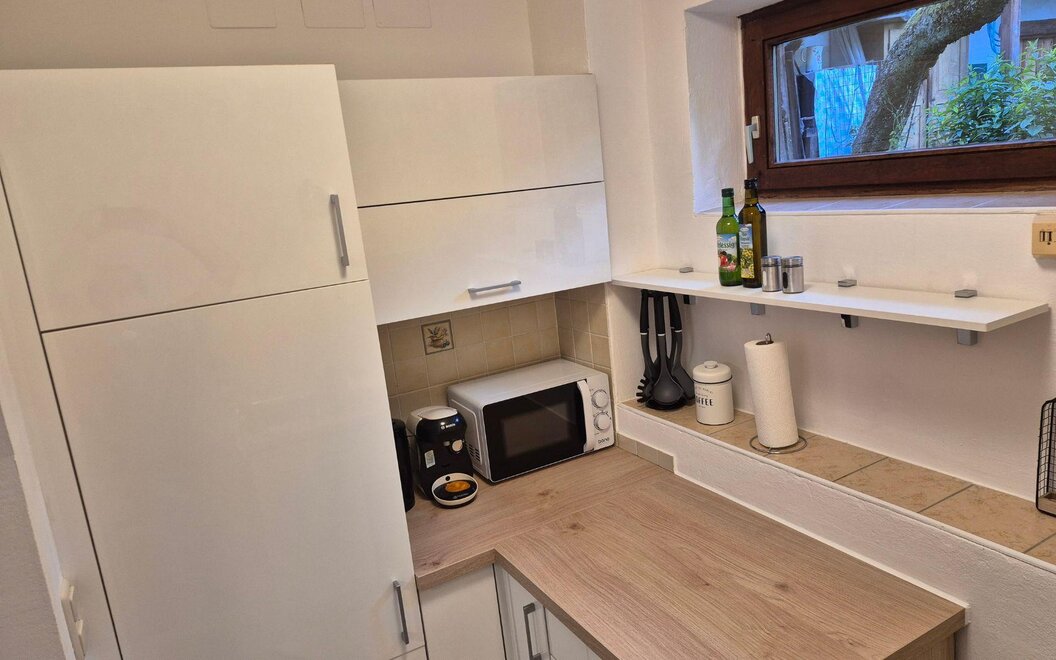 The cozy apartment is located on the first floor and extends over 38 m², perfect for two people.