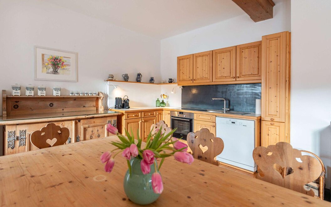 The holiday apartment at Ötzergut in Grundlsee is a spacious accommodation for up to eight guests. Spread over two floors, it features four bedrooms, a large living area, and a fully equipped kitchen. The terrace offers a direct view of the surrounding landscape.