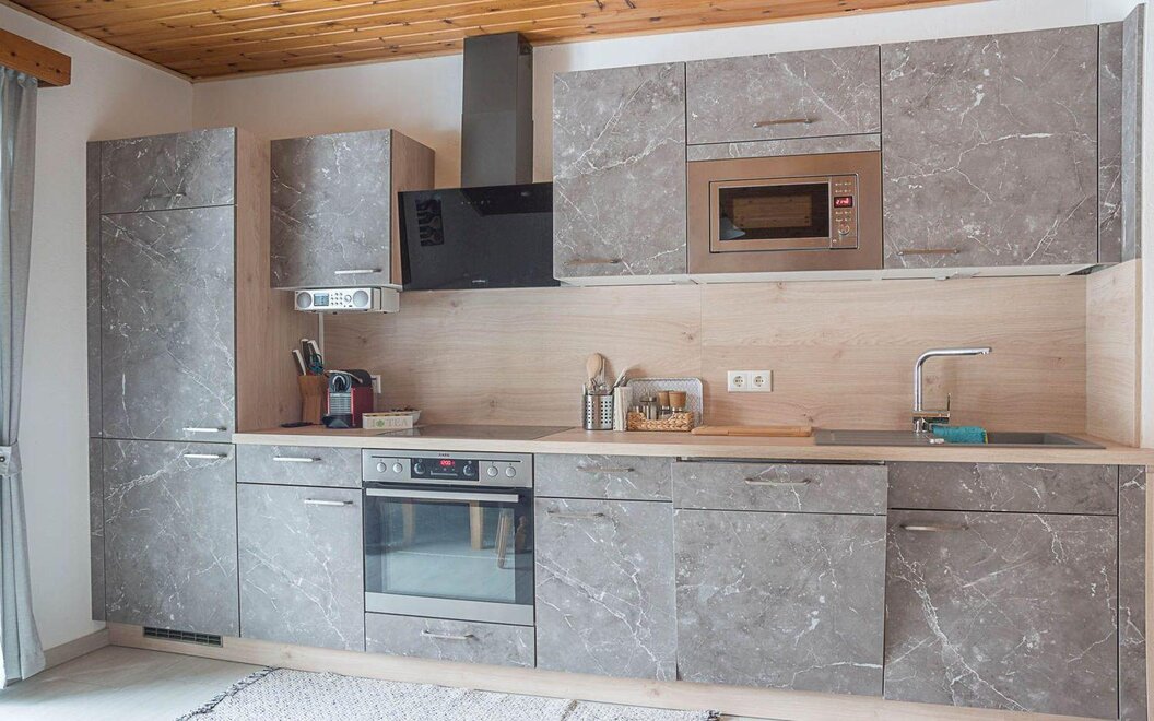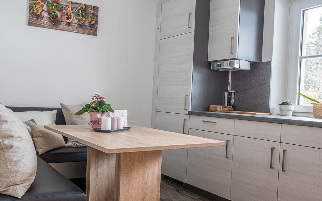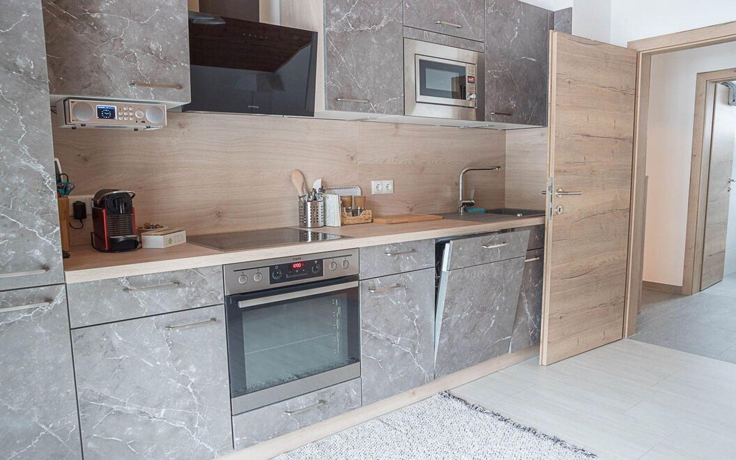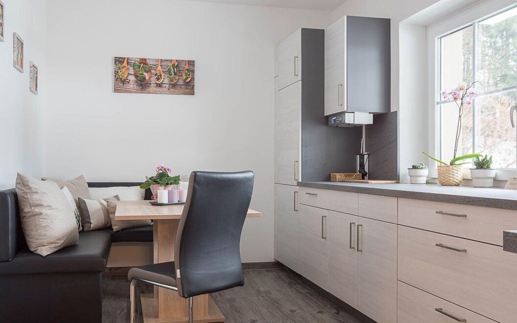 The two units, “Lorbeer” and “Wacholder”, combine modern living with alpine comfort. Bright living spaces, a fully equipped kitchen, two separate bedrooms, free Wi-Fi, and a spacious dining area create a relaxed and functional atmosphere. Each apartment features a private terrace or balcony with views of the surrounding greenery.