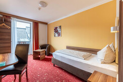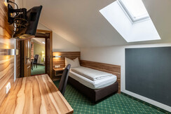 The modern rooms are equipped with bath or shower and toilet. Also with flat screen TV and wireless internet. In our restaurant you can indulge yourself with regional and international delicacies. Also a newly designed wellness area and relaxation area is available to our guests.