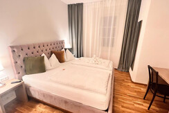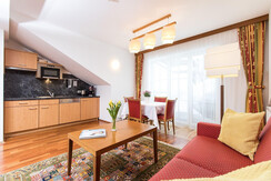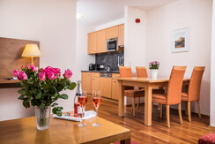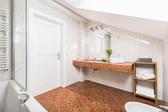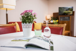 no carpet, satellite TV, high chair, microwave, coffeemaker, bathrobe, dish sink, wooden or parquet floor, ADSL, bedding, kettle, hairdryer, quiet room/apartment, heater, refrigerator, towels available, garden furniture, dining room, electric stove, dishes available, dishwasher, family room/apt., anteroom, good as new room/apt., meadow, cable TV, refrigerators available, balcony, open foot-end of bed, vent hood, low-noise room/apart., freezer compartment, bed linen (non-allergenic), smoke detector, WiFi, socket close to bed, bed linen available, alarm clock, safe, essentials (towels, bed linen, soap, toilet tissue), non-smoking room/apt., central heating, closet, furniture suite, kitchen, living room, toiletries, TV