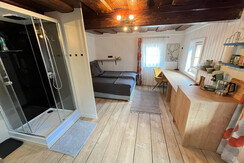 The holiday apartments are cozily furnished and well equipped with bed linen, towels, and kitchens with coffee machines, kettles, toasters, spices, and some with an oven.