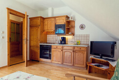 58 m2, 2nd floor, two sleeping rooms with double beds, additionally bed possible, bathing room with bath tube, WC, kitchen with eating place, fully equipped kitchen (with dish washer, coffee machine, water boiler, toaster) Sat-TV, WIFI.