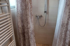 The accommodation has two bedrooms, each with a bunk bed, a fully equipped kitchen, and a bathroom with a shower. The hut must be heated with wood, which is provided.