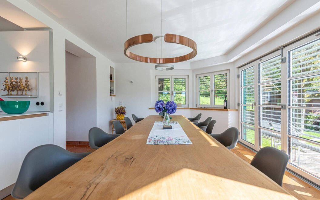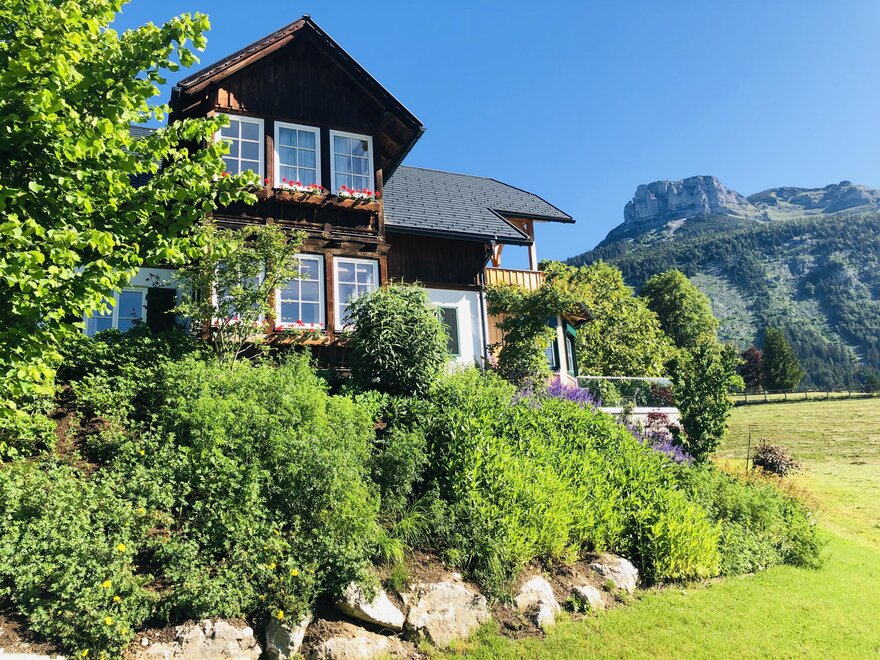 This spacious villa (200sqm) on a hillside with beautiful views, in the immediate close to the town center and Lake Altaussee lake, with two terraces and mountain views and a large garden, has four bedrooms, a living room, a flat-screen flat-screen TV, a well-equipped, modern eat-in kitchen with a fridge and a dishwasher and two bathrooms with a shower.