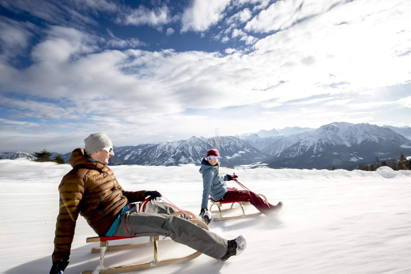 On two runners you hurtle down the valley at least as fast as on skis - and there's plenty to laugh about, too.