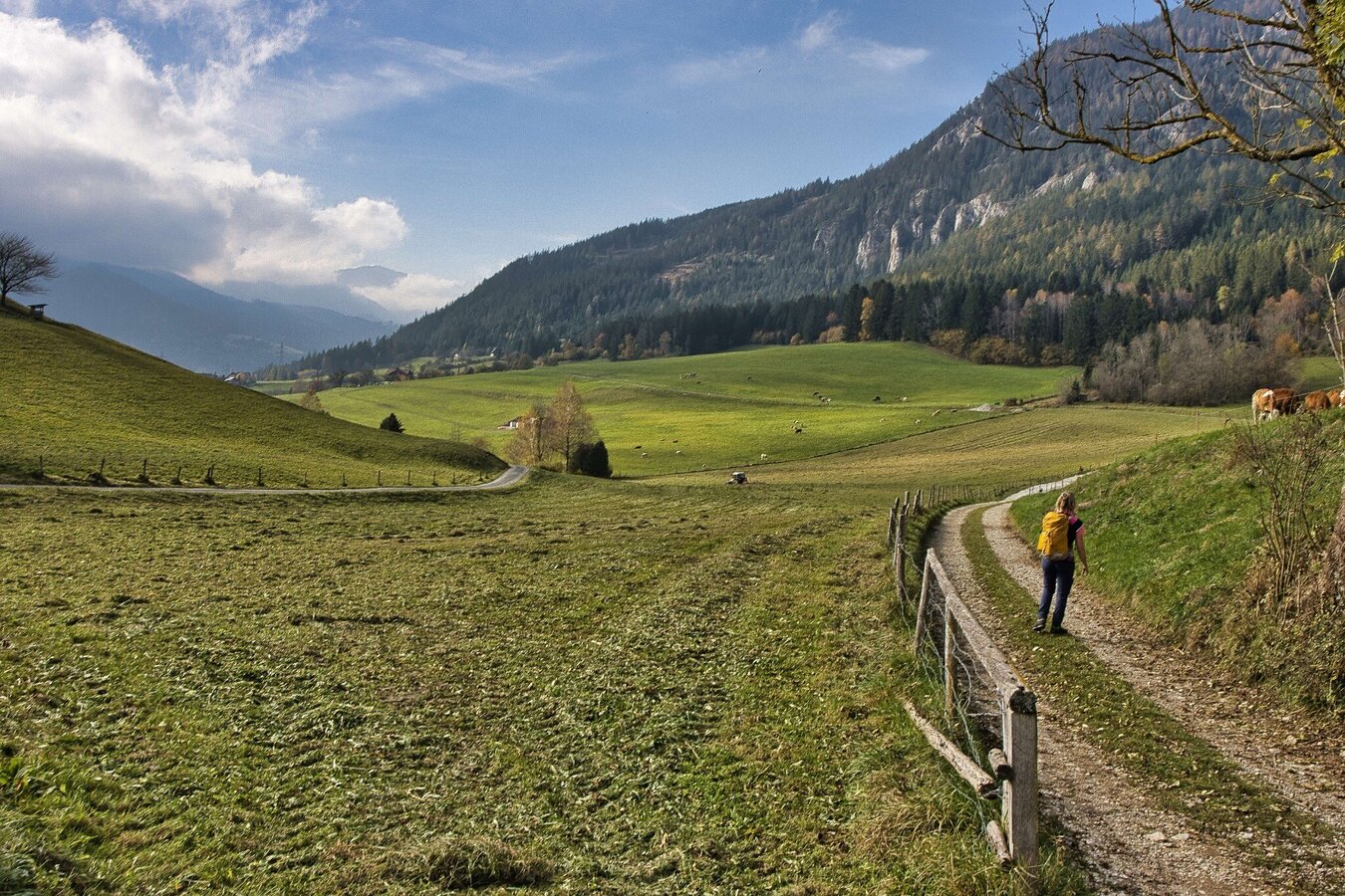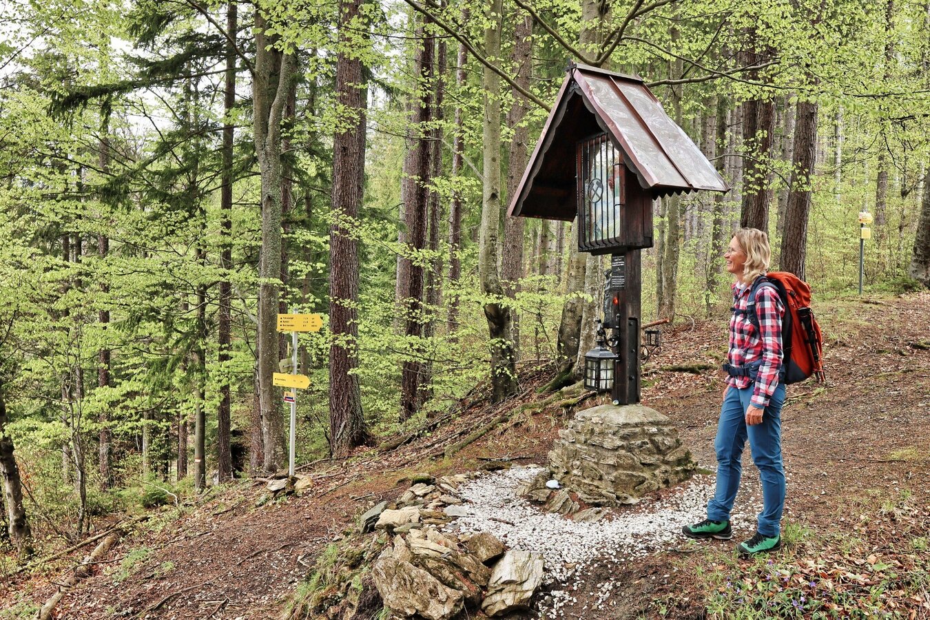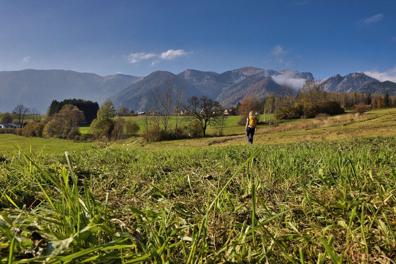 Kammern im Liesingtal (664 m) we reach the valley floor again. In the center we keep left uphill and walk along the Kalvarienbergweg and continue on the natural panorama and Marterlweg to Dirnsdorf. On side roads with little traffic, we walk towards Kaisertal and the next 9 kilometers in constant ups and downs via