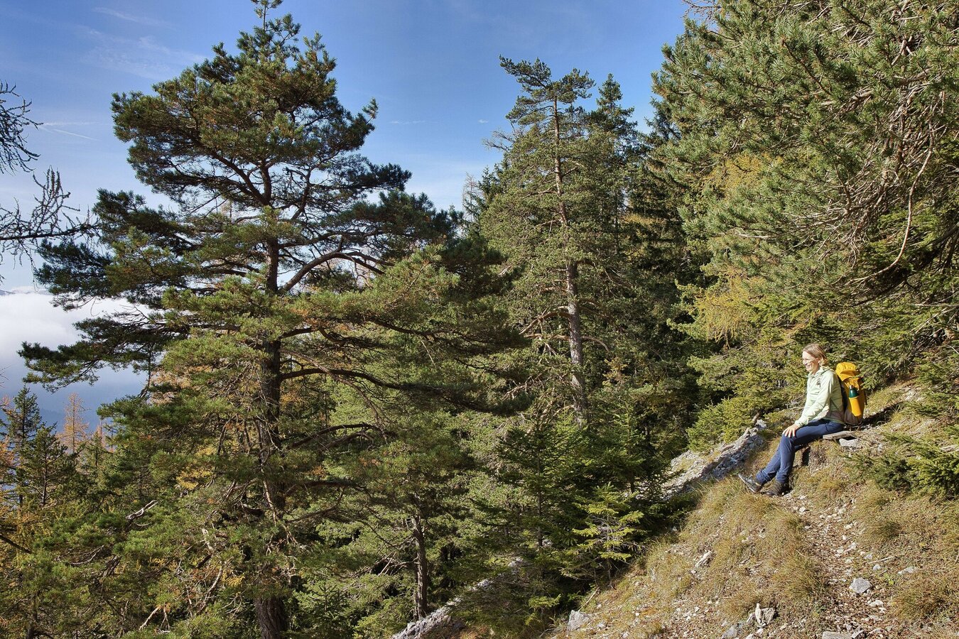 Rittersteig, an easily accessible path that leads through steep, rocky and wooded terrain. We reach the highest point of this stage on the Rittersteig at approx. 1250 meters before continuing downhill (very steep in places) to the grotto and the Kammerstein ruins. At