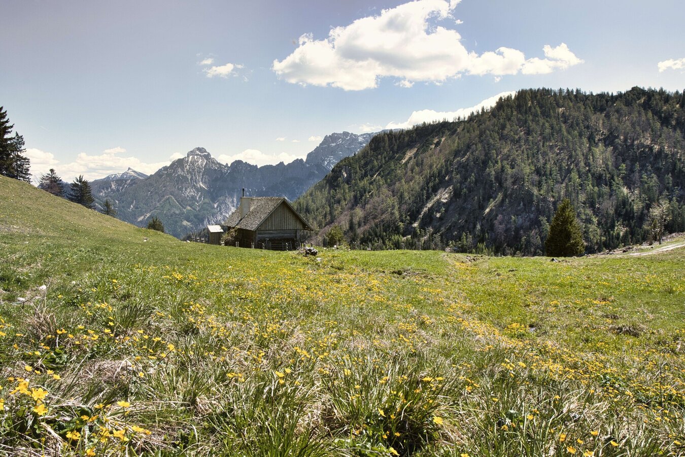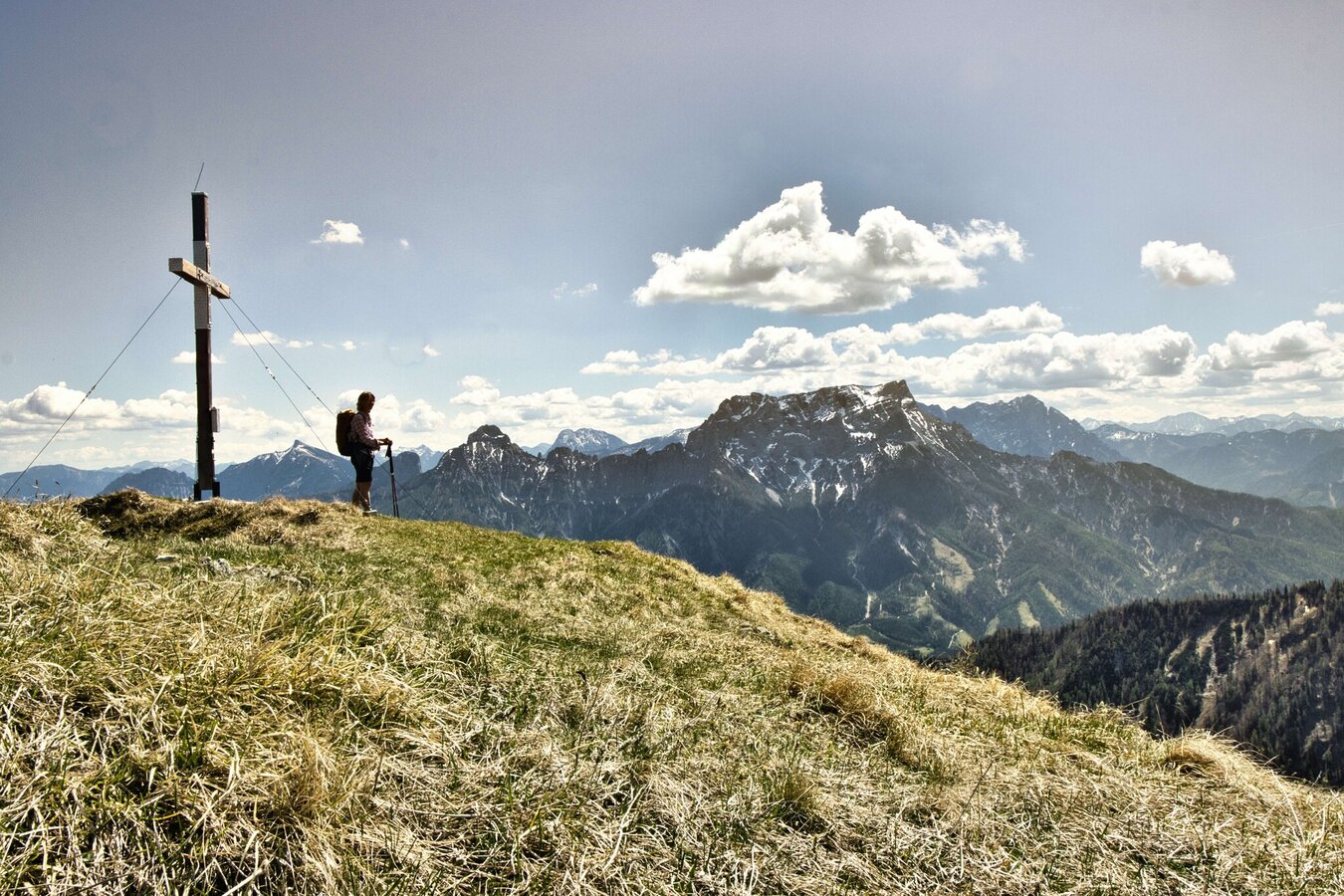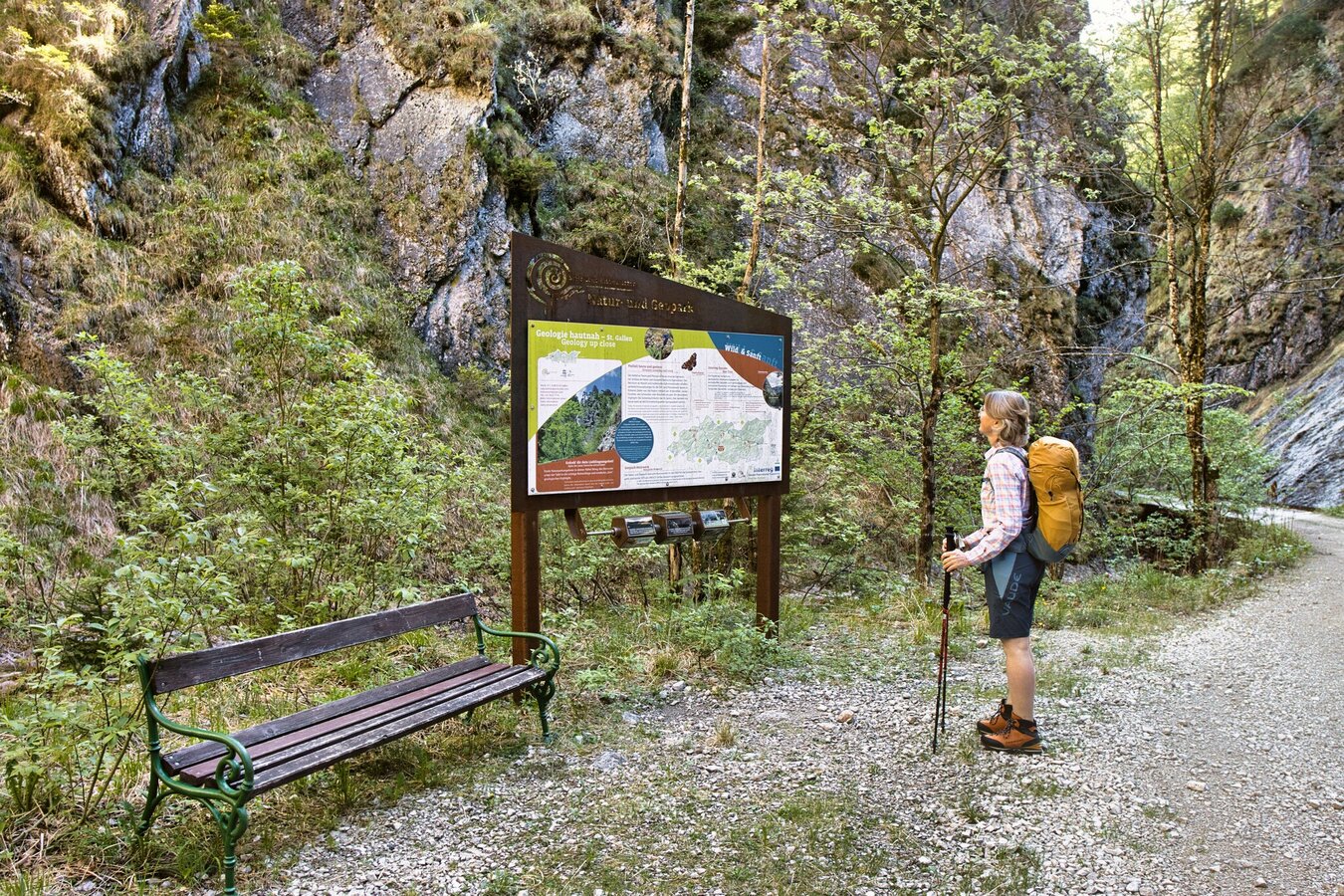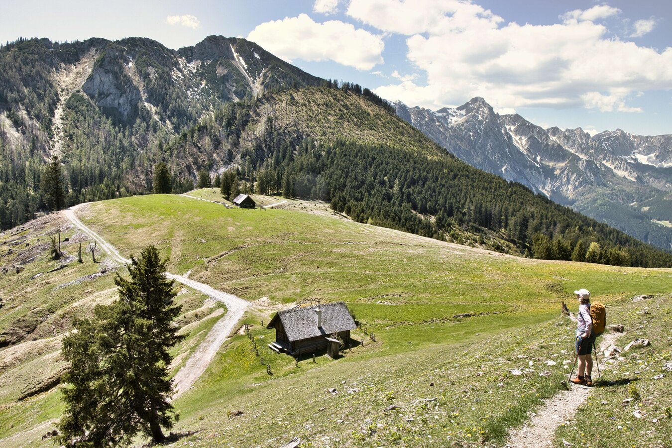 In St. Gallen, the former trade union buildings on the market square dominate the townscape and serve as a reminder of the history of the iron industry. The trail leads us up to the Spitzenbachklamm gorge, where striking rock faces and the rushing stream make a lasting impression; at the same time, with over 400 documented butterfly species, it is considered a natural treasure. The trail continues through shady deciduous forests to the Spitzenbergeralm and the Sauboden before we reach the saddle between the Kleines and Grosses Maiereck. A scenic mountain ridge leads to the 1,763-meter-high summit with far-reaching panoramic views. The descent takes us via the Seisenalm and wooded paths into the valley, where we pass the water adventure park and finally return to St. Gallen.