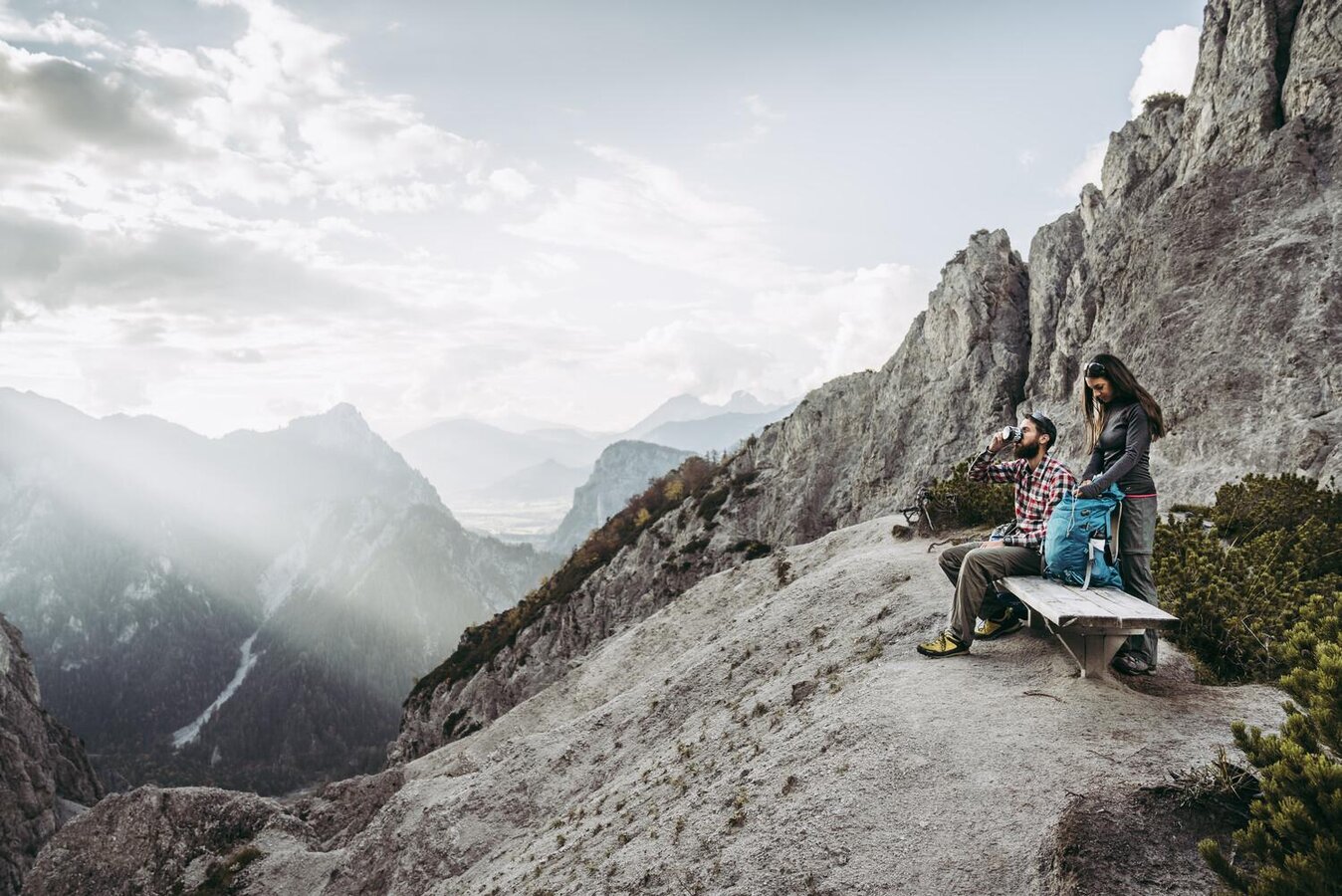 As the Wild John was a giant, you will find a giant swing, a giant sand pit, a giant picnic area, etc. At the former gravel works we leave the Sagenweg and turn left onto trail no. 658, the Gsengschartenweg. Now we climb a little more arduously in gravelly terrain, which resembles an empty stream bed, up to the Gsengscharte. With a bit of luck we will see a few chamois standing between boulders and mountain pines. Now the key passage "Gsengscharte" follows. Here the rock is "gnawed off" like a bone by wind and weather and so we have to overcome the last meters to the ridge by means of a chain and rope anchored in the rock. Now we have reached the highest point and go down into the extremely romantic Haindlkar. Bizarre rock formations, almost tame seeming chamois and the view into the Hochtor-Norwände inspire our eyes. Now we have earned an extensive meal at the Haindlkarhütte. With a bit of luck we can watch climbers on the Hochtor walls with binoculars on the terrace or hikers on the Peternpfad. Freshly strengthened we set off again and climb up a stony path, past the old Haindlkarhütte, which is still used as a winter camp, down to the Enns, which we can already hear rushing from time to time. Arrived at the parking lot Haindlkarhütte, a path leads to the left into the forest. We cross a dried out creek bed and another short stretch through the forest until we descend again to the main road before the gypsy tunnel. We cross the main road and walk back to the parking lot on the old road, which is only used by cyclists and hikers anymore.