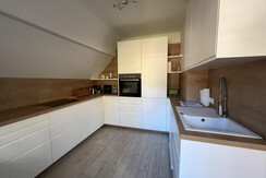 The guest apartment on the first floor of Chalet Elsa includes two master bedrooms featuring king size beds (the one with a sunny Eastward facing balcony with a stunning view and deckchairs doubles as dining room with a table sitting 8, the other has a South-facing balcony as well as a high quality 1,70m wide sofa bed). The third - small - bedroom hosts a 1,40m wide double bed. The apartment is equipped with a bathroom featuring a shower and toilet as well as a double handwash basin. In addition, there is a separate toilet in the apartment. The kitchen is fully equipped.