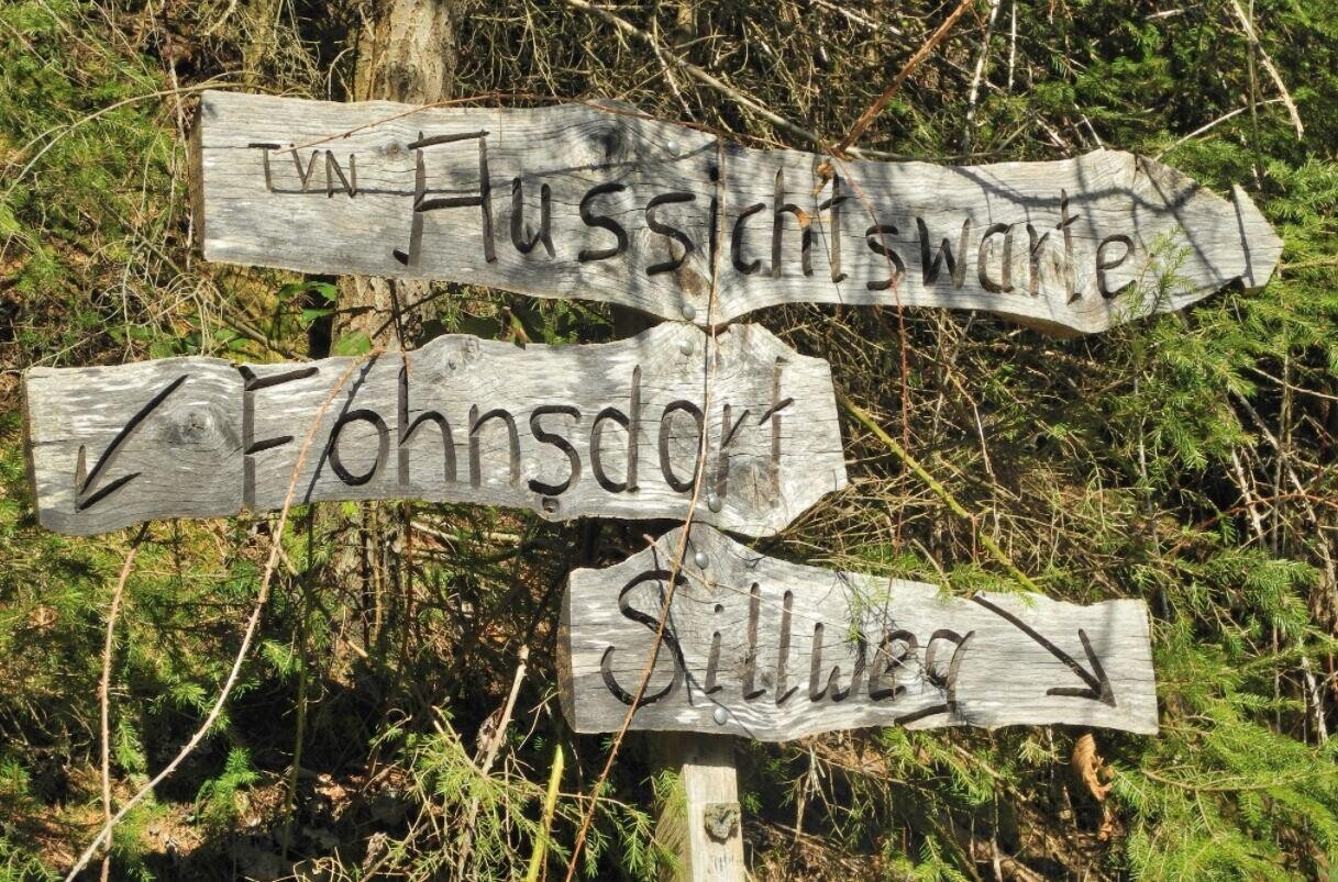 After leaving the village area, the gradual ascent begins on unpaved paths. The path leads through wooded sections, which become denser as you ascend and provide shade. There are small clearings along the way that offer the first views of the surrounding region. The route climbs steadily up to the Sillwegeraussichtswarte.