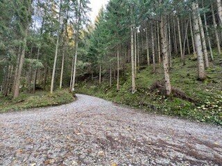 From the “Grüner Specht” inn, we walk past St. Nicholas Church across the church square in the direction of “Blahbach”. After crossing the stream, we follow Bachstraße to the “Nagelschmiedkreuz” and continue along Franz-Josef-Straße. Passing the biomass heating plant and forest park, we ascend slightly, walk through idyllic forest and reach the Treffenthaler farmstead.