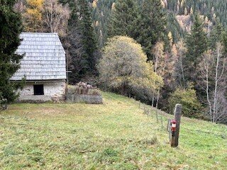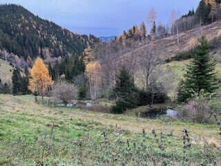 Trail no. 6 starts at the “Grüner Specht” inn and leads past the spa hotel to the Kump inn. From there, it continues along the residential street to its end, where a footpath begins along the Blahbach stream. The path runs idyllically past the landscape pond and an old lime kiln to the Moschitz farmstead. Here we branch off to the right and follow a steep path uphill. After a section of forest, we reach the mountain road and hike uphill past farms and the “Maria Schnee” chapel. Via the “Ohrn-Kehre” (1420 m) we then head downhill back towards Oberzeiring.
