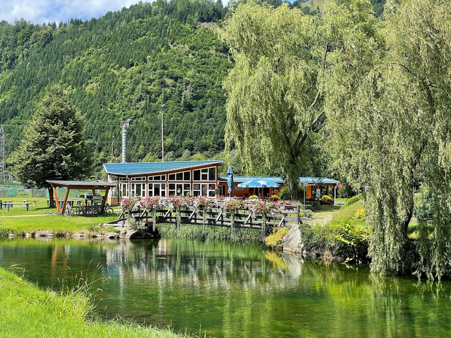 The newly created swimming pond with about 1,000 m² of water surface invites you to splash and swim. For those who prefer more excitement, a colorful rainbow slide and a wooden diving tower provide fun and adventure.