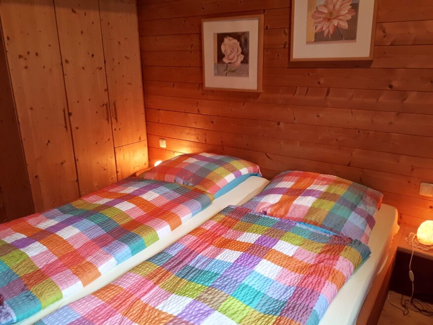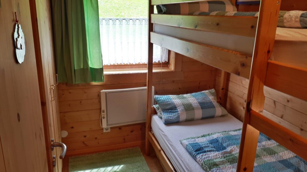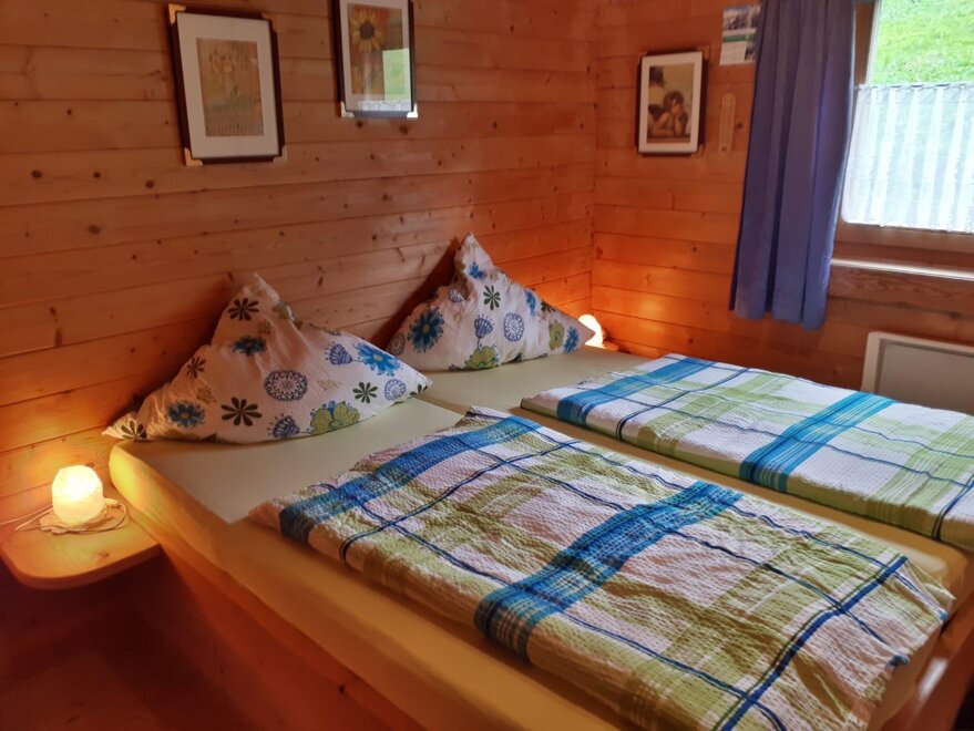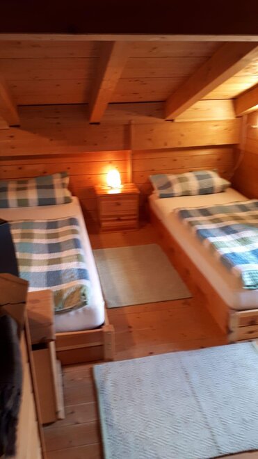Four separate bedrooms offer a retreat for everyone. One bedroom with double bed is on the ground floor, the same on the upper floor. 1 bedroom with a bunk bed and a "sleeping cave" (very popular with children) with 2 single beds that can be pushed together to form a double bed complete the furnishings. So there is room for a total of 8 people.
