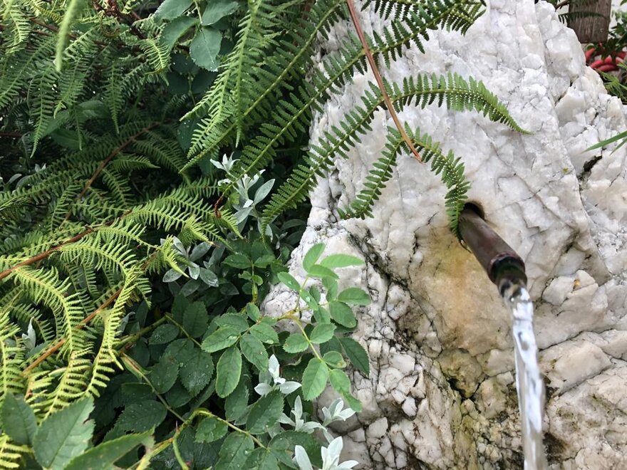 running hot/cold water, shower, toilet, wash stand