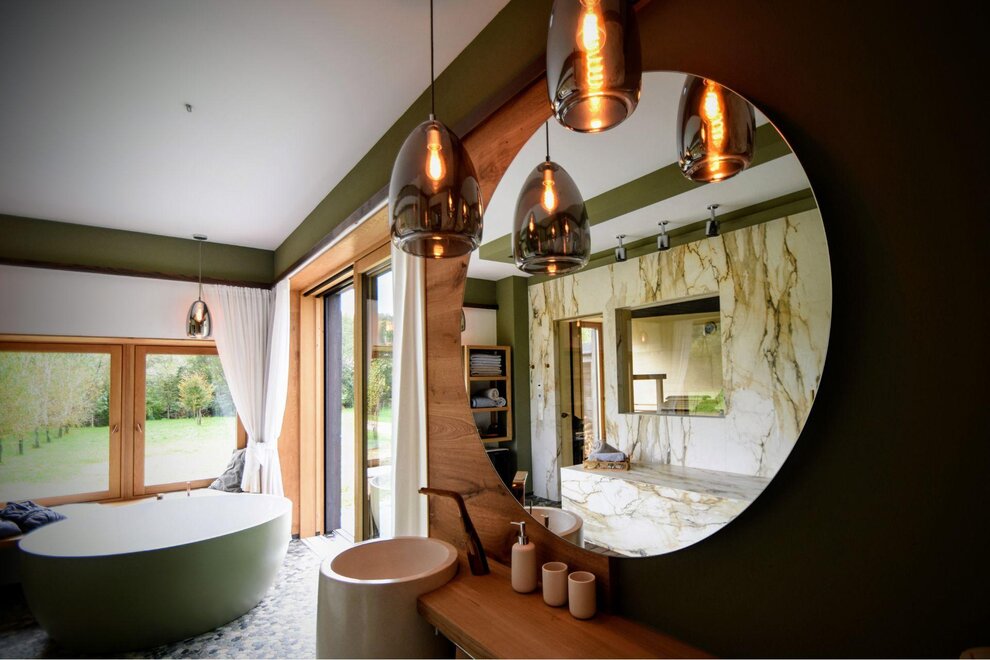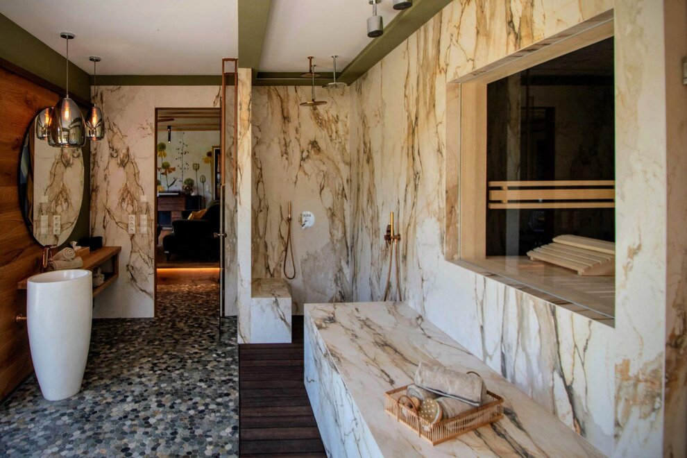 - Wellness bathroom can be opened to the outside, hammam showerbed, rain showers & round bath as well as 3.5 additional baths