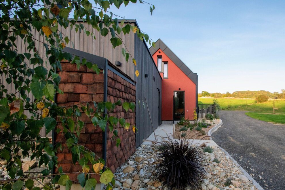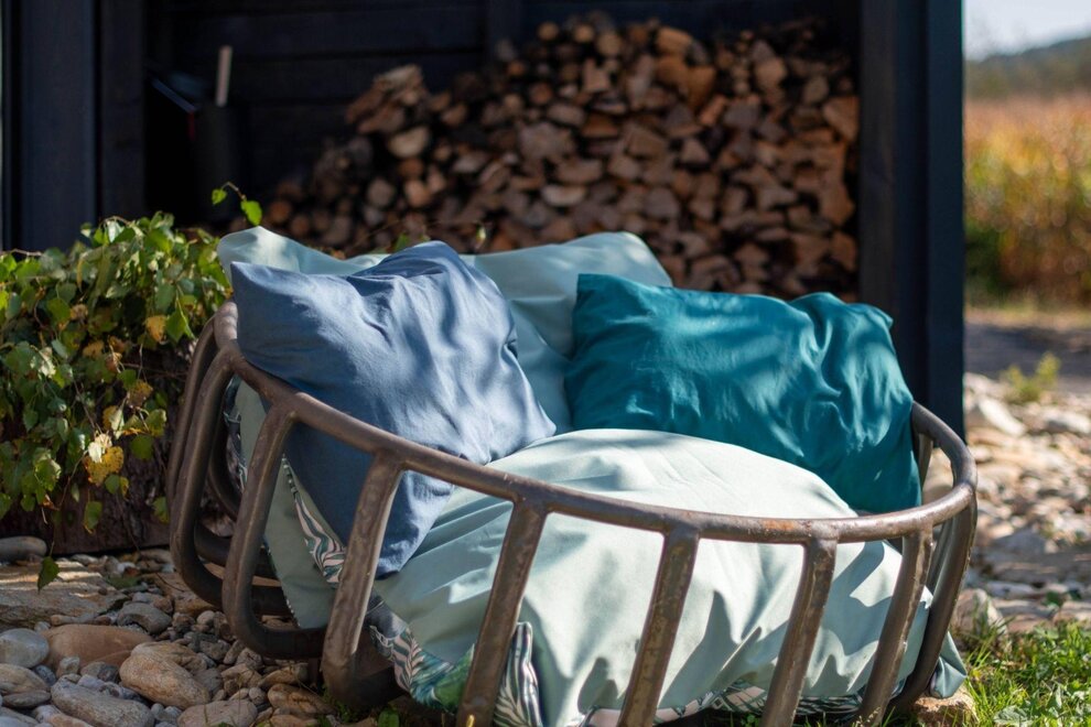 - Communal outdoor area with fire pit, playground, circus wagon and pool in summer