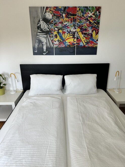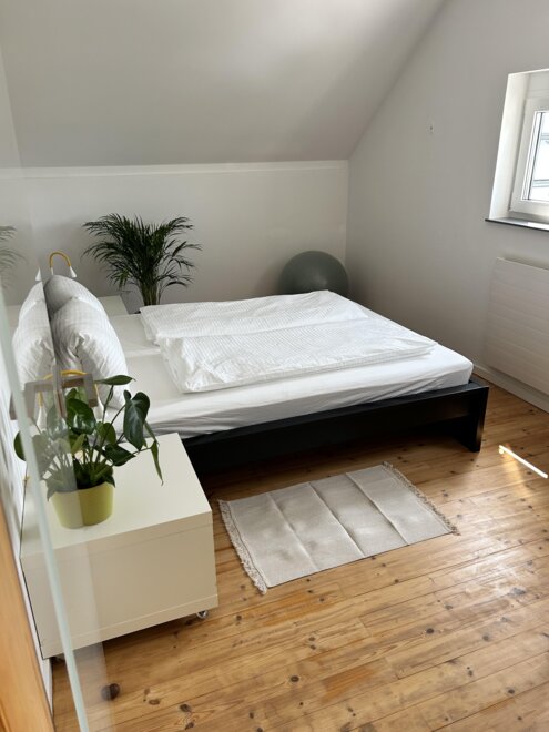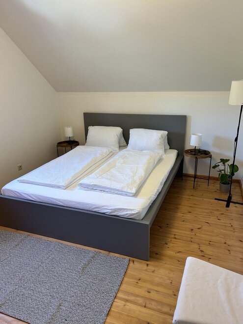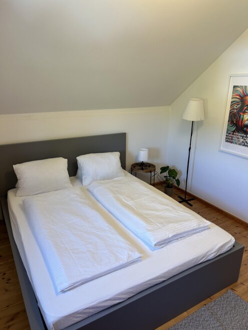 Enjoy restful nights in our two cozy bedrooms, each furnished with a comfortable double bed and soft linens. Tastefully decorated and designed for relaxation, they offer the perfect retreat after a day at the lake or exploring the region. Ideal for couples, families, or friends traveling together.