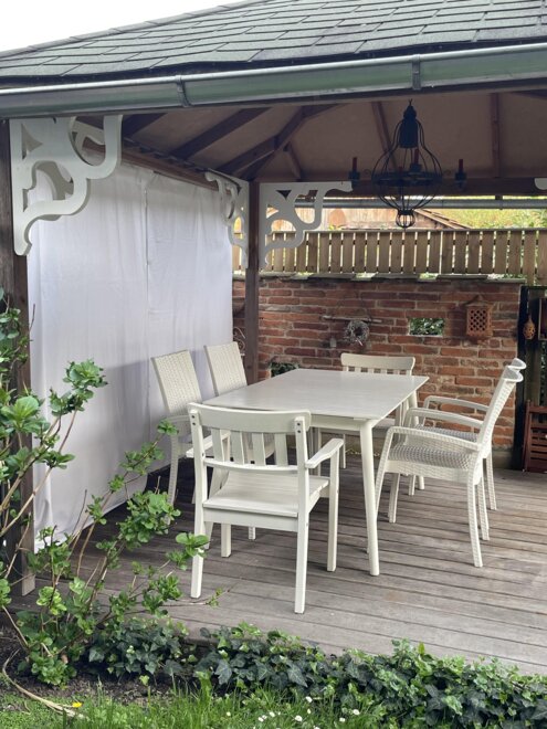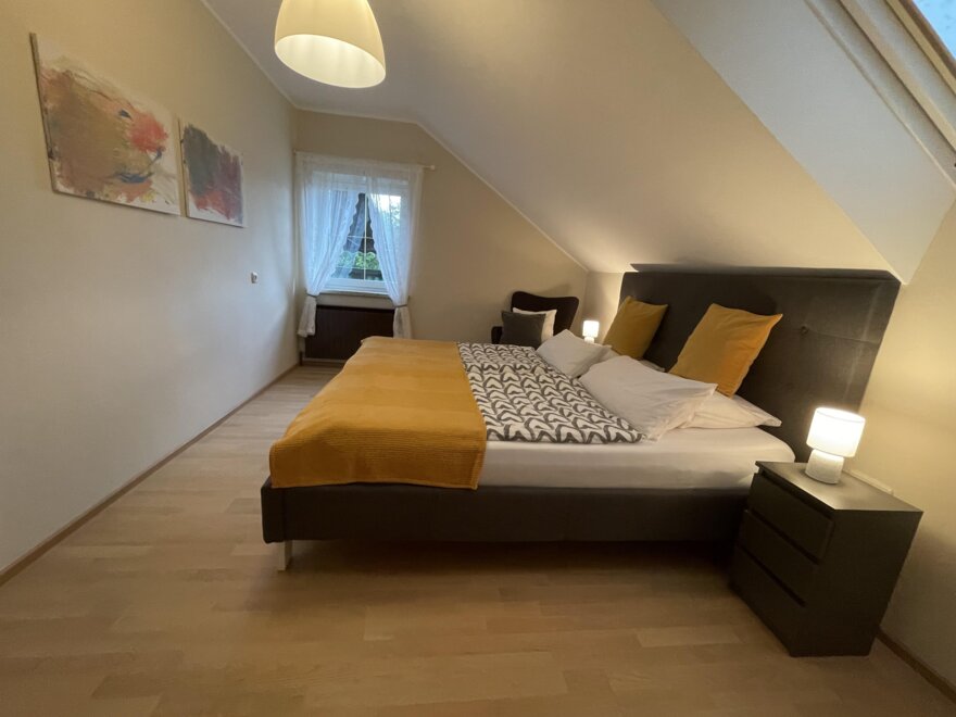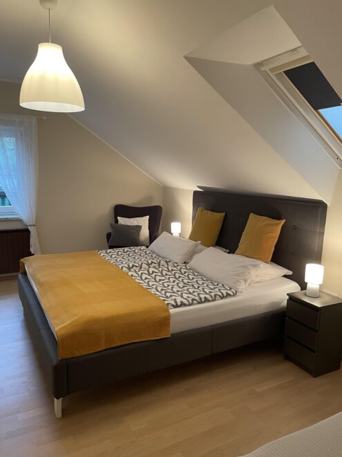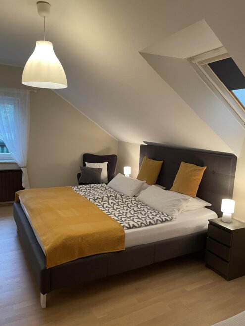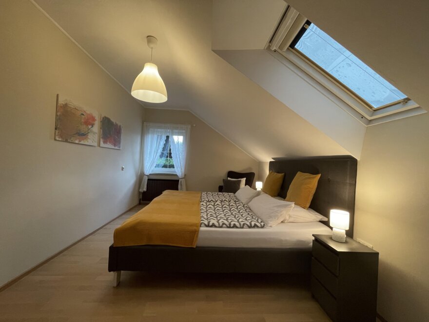 bed linen available, dishes available, heater, oven, no carpet, dining room, store room, air conditioning, closet, dish sink, electric stove, kettle, walk-in closet, socket close to bed, kitchen, coffeemaker, island kitchen, family room/apt., dishwasher, living room, refrigerator, towels available, WiFi, good as new room/apt., garden, meadow, open foot-end of bed, kitchen and table linen, TV, essentials (towels, bed linen, soap, toilet tissue), wooden or parquet floor, garden furniture, bedding, no pets allowed, smoke detector, cooking possibilities, modern furnishing, furniture suite, open plan kitchen/living room, hairdryer, separate bedroom/s: 2, balcony, kitchen utensils, balcony furniture, anteroom, separate living room, terrace, tiled or marmor floor, non-smoking room/apt., separate bedroom/living room, private entry, internet connection available, satellite TV, central heating, quiet room/apartment
