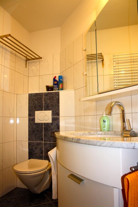 The apartment consists of a well-equipped kitchen, a living room with sofa bed, TV with satellite, radio and CD player, a Vorraum, a bedroom and is equipped with a bright bathroom, shower, toilet and hair dryer. Underfloor heating throughout the apartment.