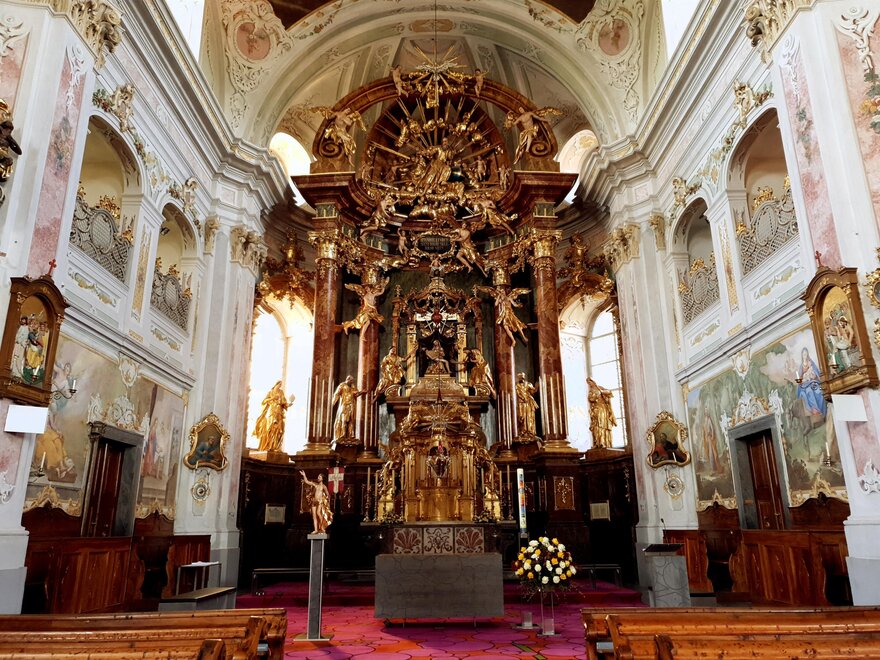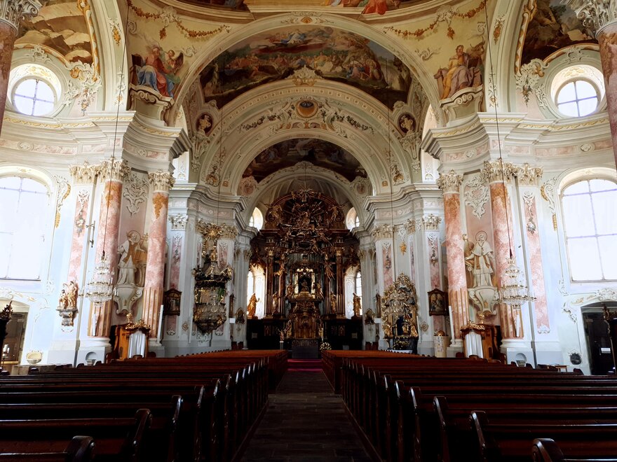 The basilica is a church with special features - inside it is decorated with fresco paintings by Josef Adam Ritter von Mölck, and on the ceiling you can find a painting of the five great Marian feasts of the church year. The high altar, in the center of which there is a Pietá depiction, is the work of the famous sculptor Veit Königer. The two towers of the basilica, which are about 44 meters high, are particularly striking from the outside.