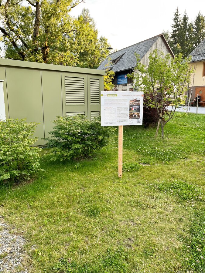 - We walk along the street behind the Huab'n and Greißlerei, noting stations 2 to 11 of the themed trail.