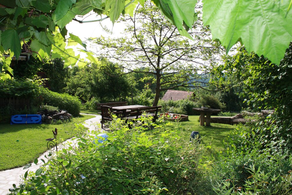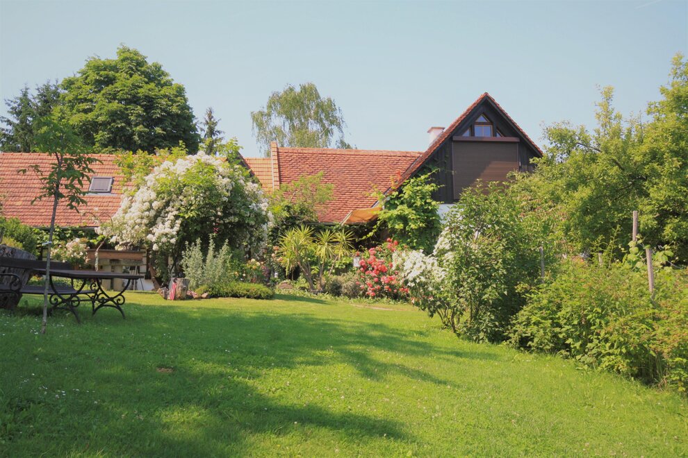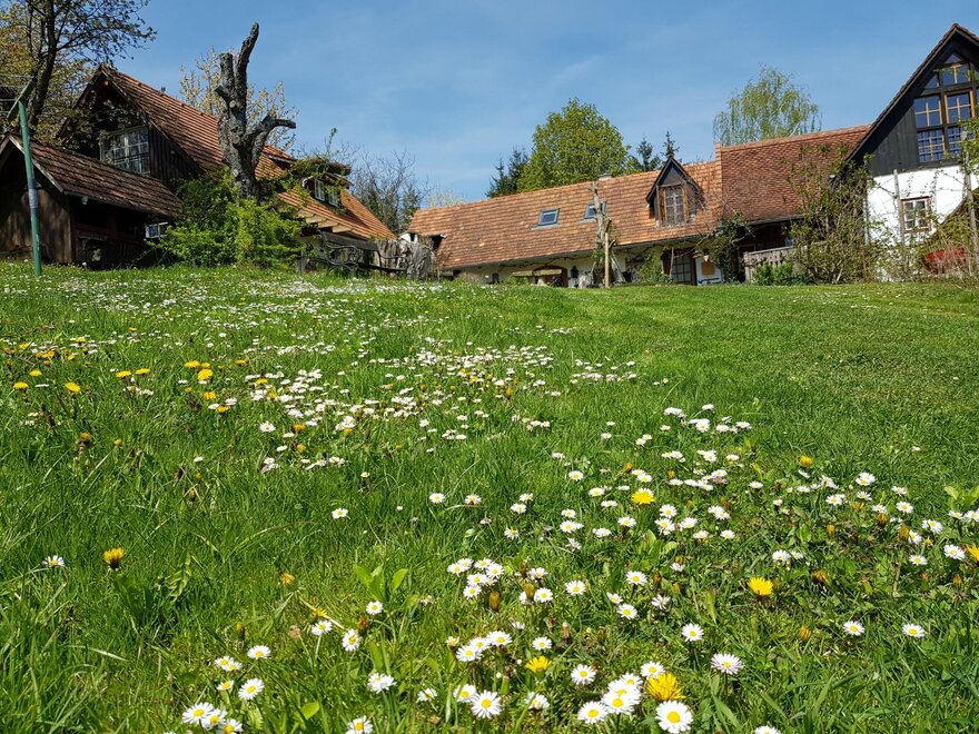 The Romantikstöckl - a holiday home for up to 3 people. On the ground floor, a living kitchen with an adjoining light-flooded veranda and a stove; bathroom with WC and shower, hallway. Spacious east-facing terrace, small west-facing terrace. On the upper floor, a living bedroom followed by a double bedroom with a wonderful view of the orchard.