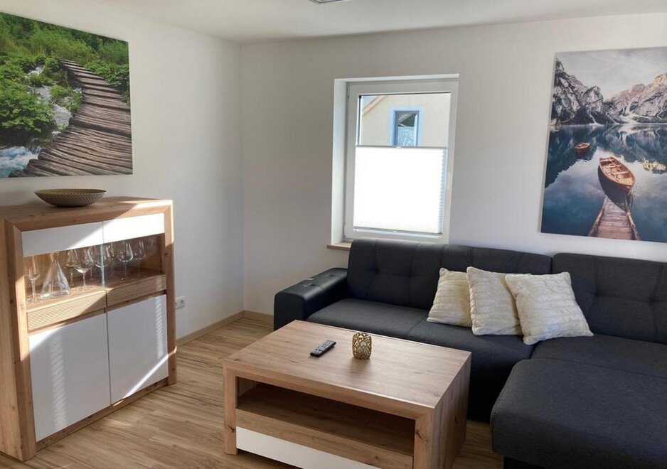 - Living room with 2-seater sofa bed and TV