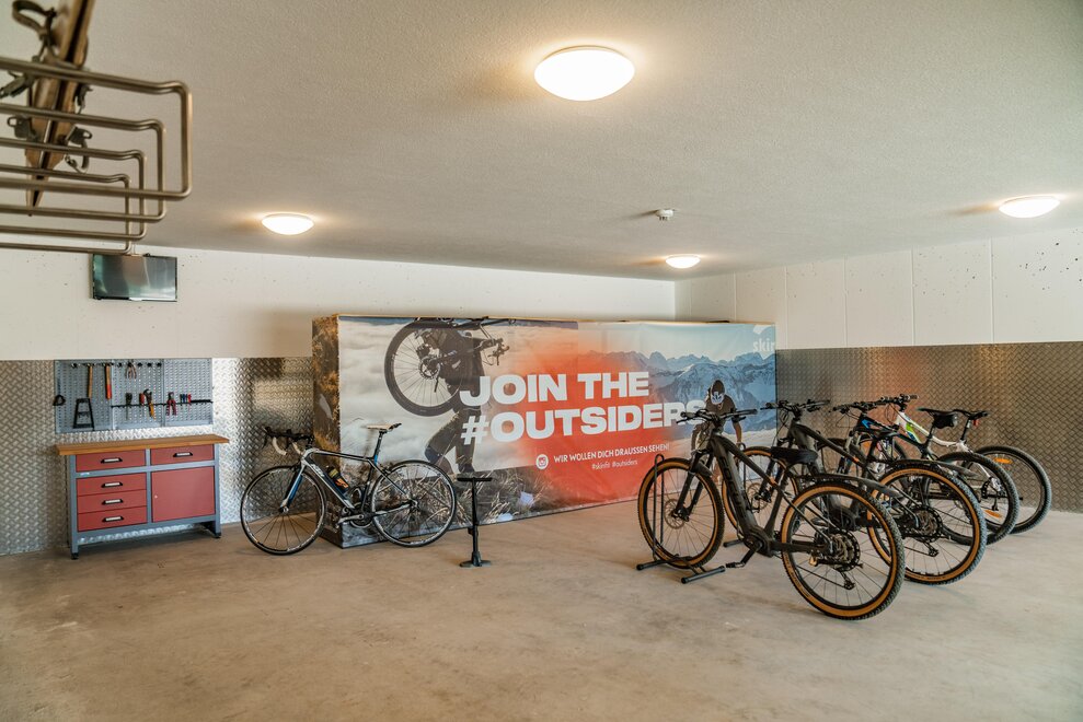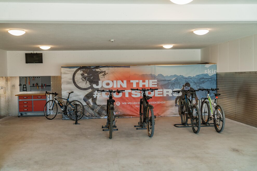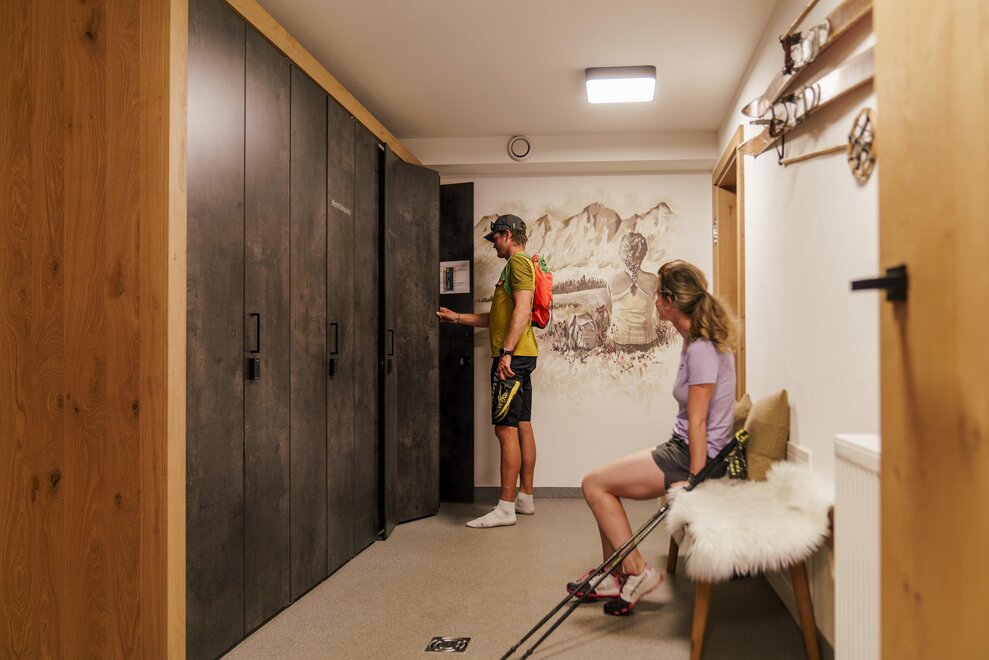 Furthermore, the apartment is barrier-free and has an elevator as well as an electric filling station, garage for bicycles, and ski and shoe room.