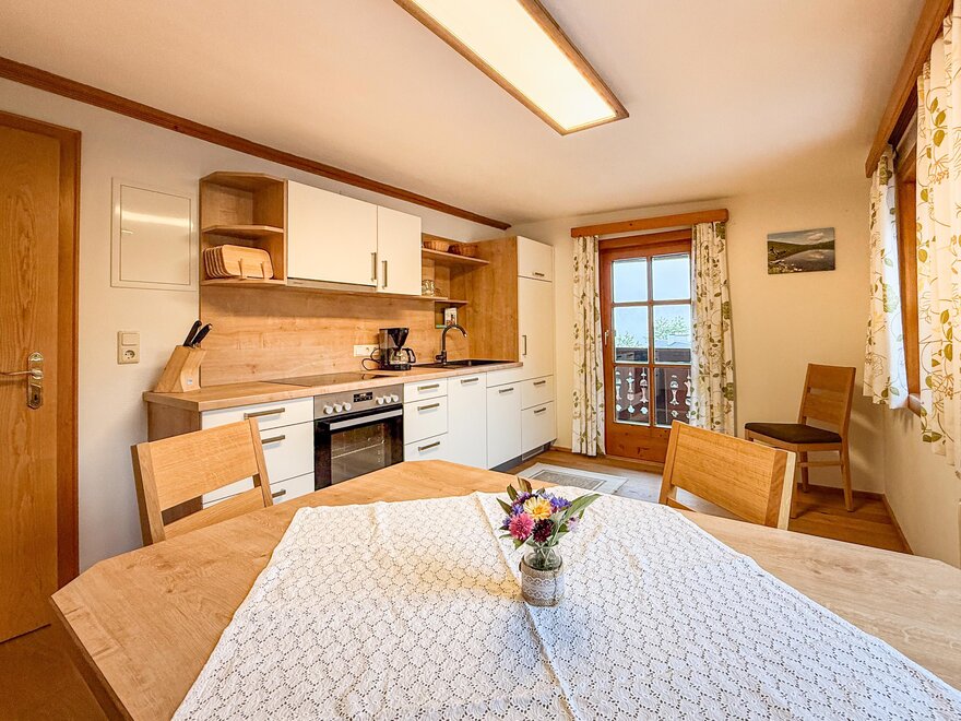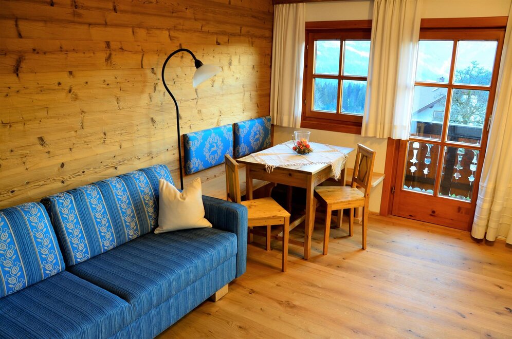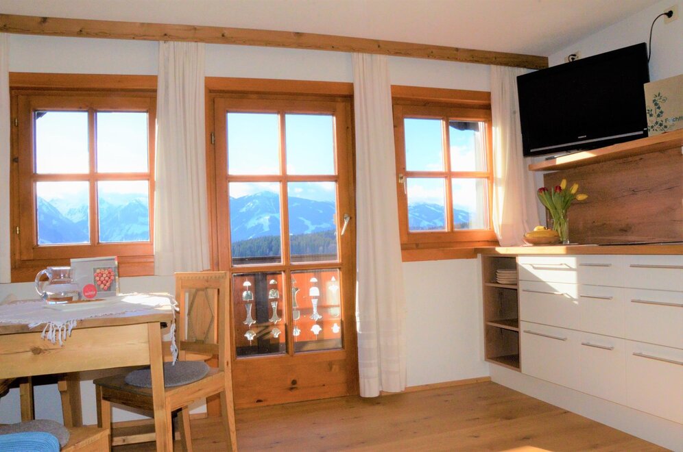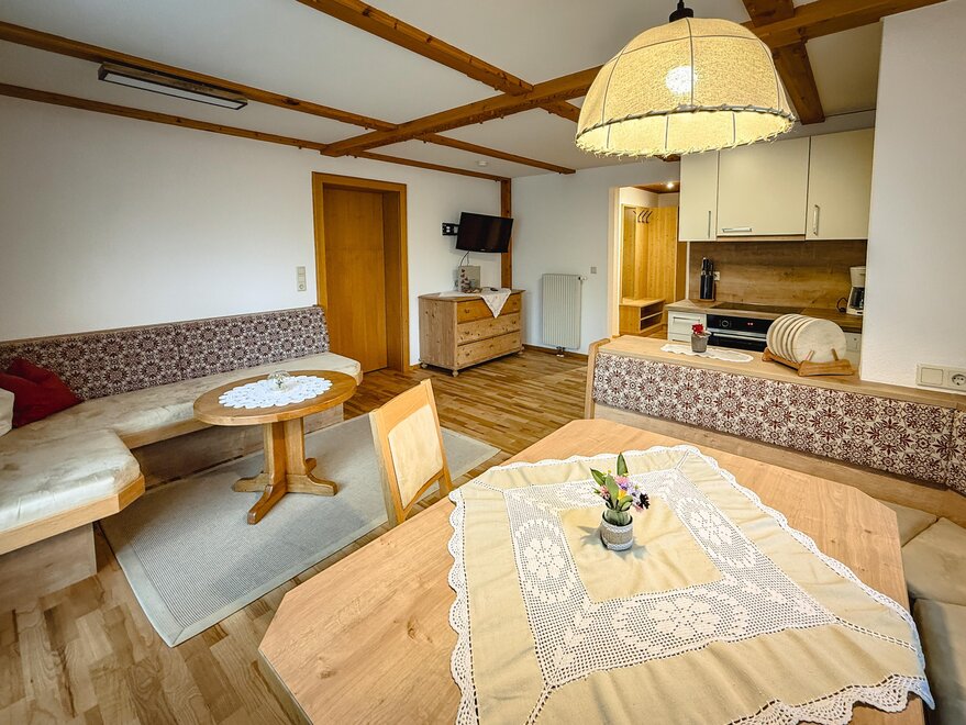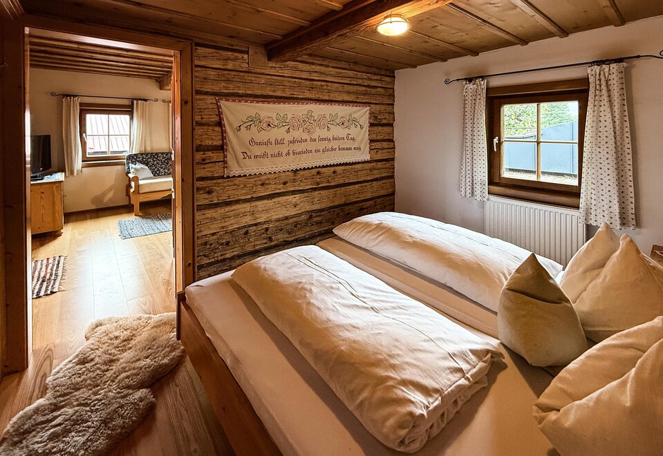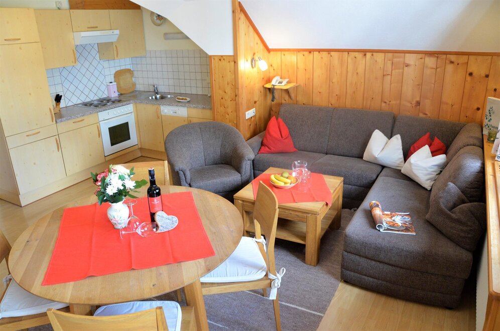 The quiet location, the extraordinary panorama on the balcony and the homely atmosphere - here the guest discovers a completely new way of life. Designed for four to six people, our two holiday apartments offer harmonious, family flair. A spacious living room with sofa bed, a fully equipped kitchen with oven and dishwasher, as well as a sunny balcony allow a living deluxe on 68 m².For our guests we gladly arrange an extensive breakfast buffet with homemade products such as bread, jams, juices and yoghurt.