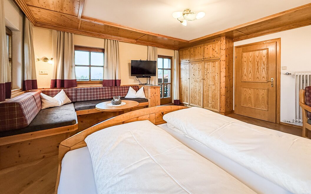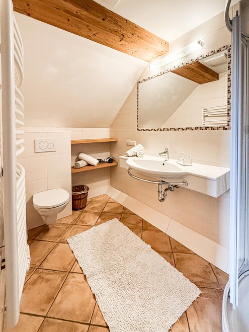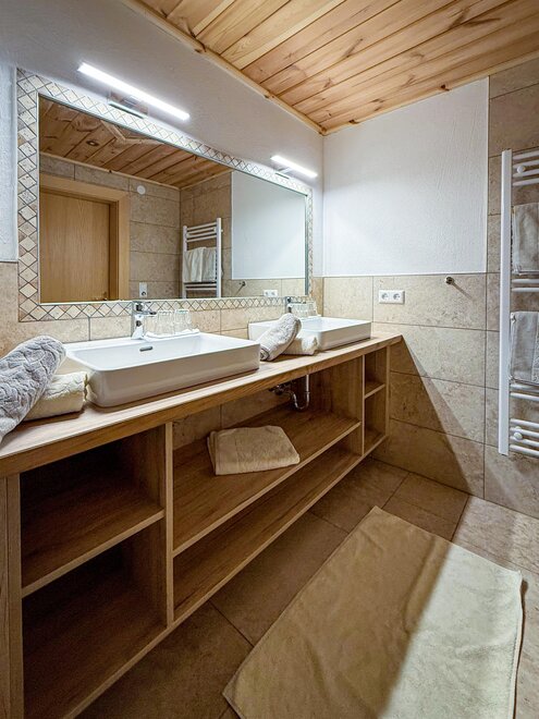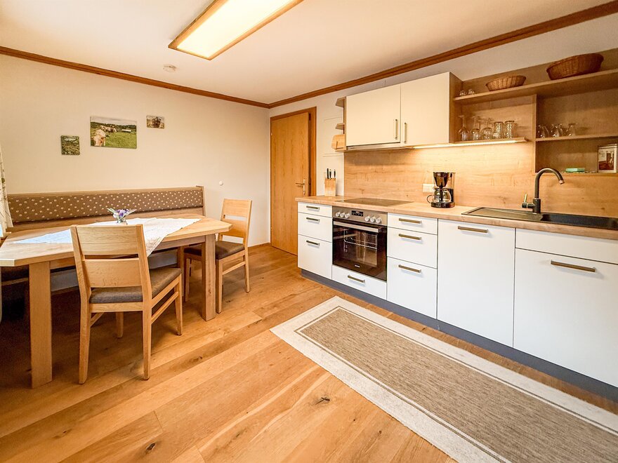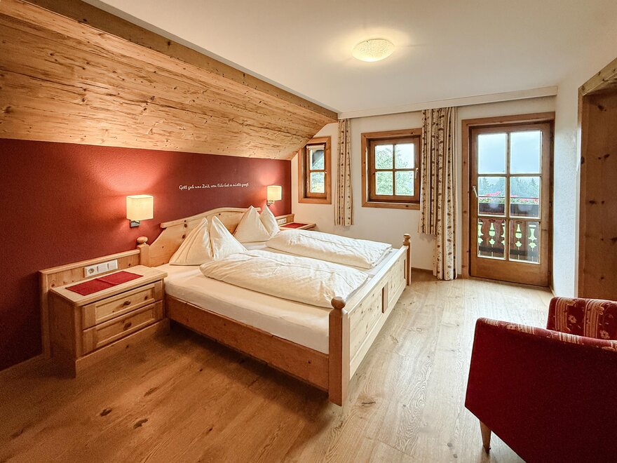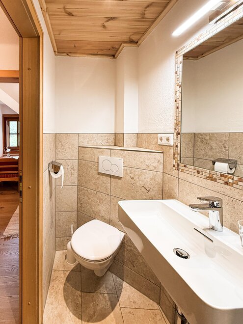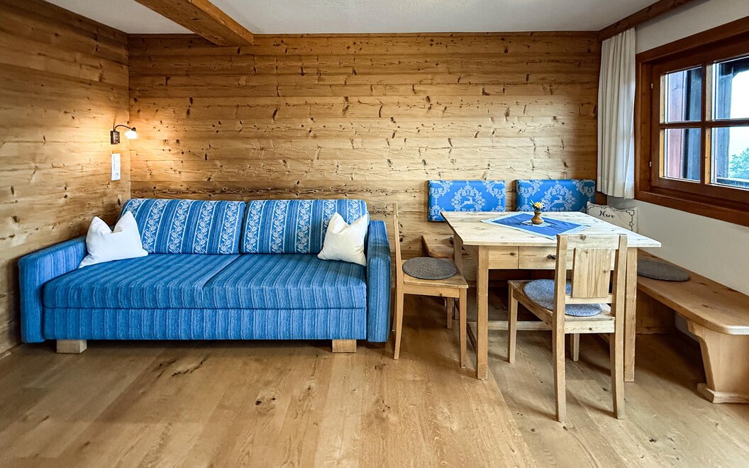 The quiet location, the extraordinary panorama on the balcony and the homely atmosphere - here the guest discovers a completely new way of life. Designed for four to six people, our two holiday apartments offer harmonious, family flair. A spacious living room with sofa bed, a fully equipped kitchen with oven and dishwasher, as well as a sunny balcony allow a living deluxe on 68 m².For our guests we gladly arrange an extensive breakfast buffet with homemade products such as bread, jams, juices and yoghurt.