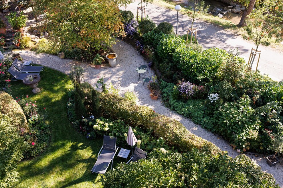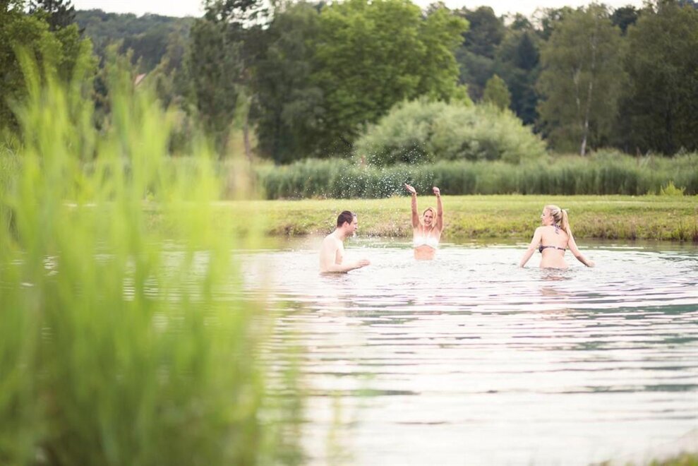 The garden features a pond and a seating area. A small vineyard awaits you at the entrance to the Weinlandhof. In autumn, you can harvest your own grapes here.