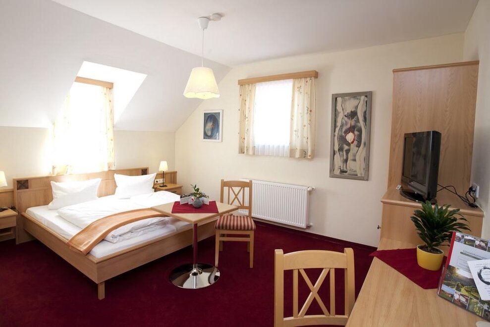 Such a thing is called culinary security! Because you are almost always taken care of. In the morning with a hearty breakfast from the rich buffet, at noon the afternoon menu offers fine hot dishes for those in between hunger. For the sweet-toothed, there are ice creations and homemade pastries in the café with a sun terrace. The wonderful four-course evening menu tempts the palates from 6:00 PM onwards, and if you need a snack with your gin and tonic in the wine bar, beef tartare, regional cheese, and ham are ready to serve!