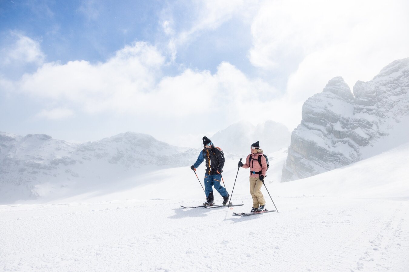 Descent from the Dachstein mountain station to below the Dirndl via the groomed and marked trail. Ski up and follow the trail in a long left-hand bend past the shoulder ascent - which leads to the Dachstein summit - to the Seethalerhütte. The hut, which was significantly redesigned in 2018, is located between the Dirndl and the Hoher Dachstein directly on the south face of the Dachstein. Return as outward route.