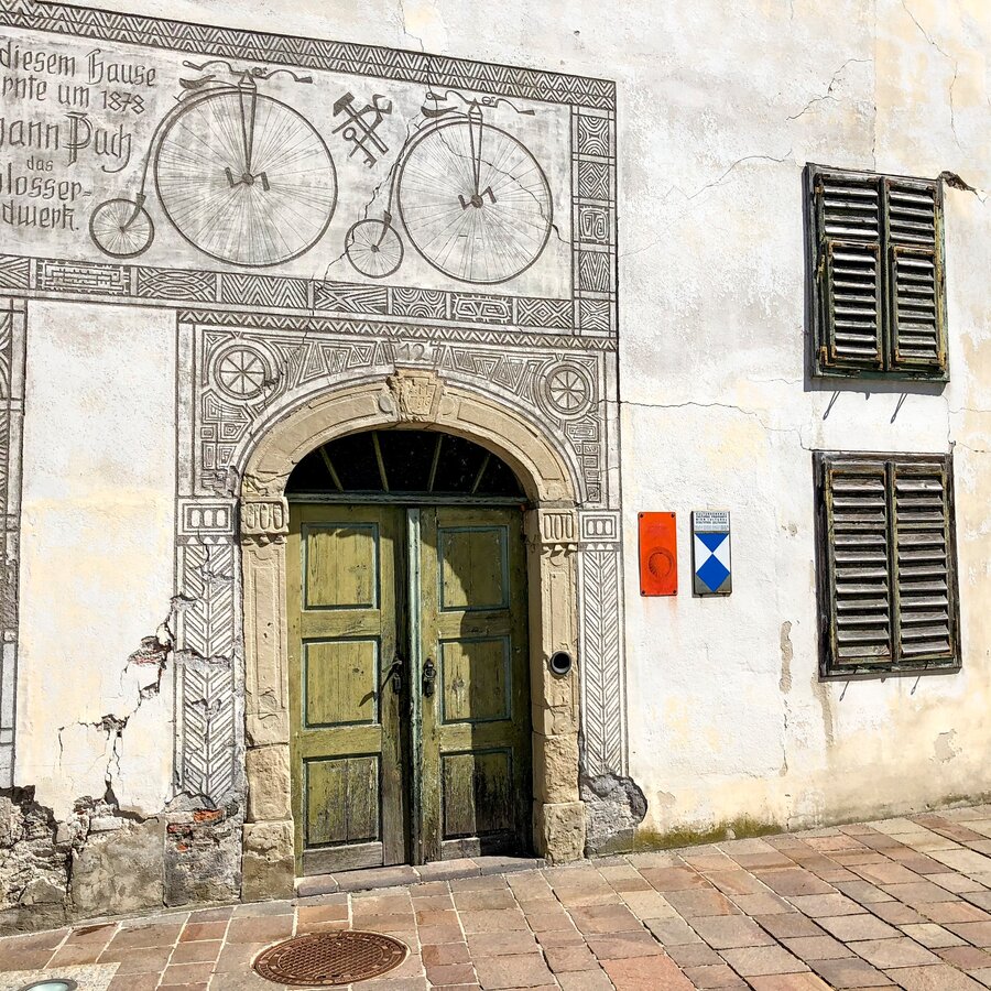 When we arrive in Mureck, we notice something: Mureck, like Wildon, which we remember fondly, is a real street village. Unlike in a market town, the houses face the road with their long sides rather than their gables. And, also in Mureck, the next absolute must-see awaits us: a visit to the Mureck Ship Mill. Easy to find, it has sure been delighting all Murradweg cyclists for many years. The signage to the ship mill and back to the Murradweg is excellent.