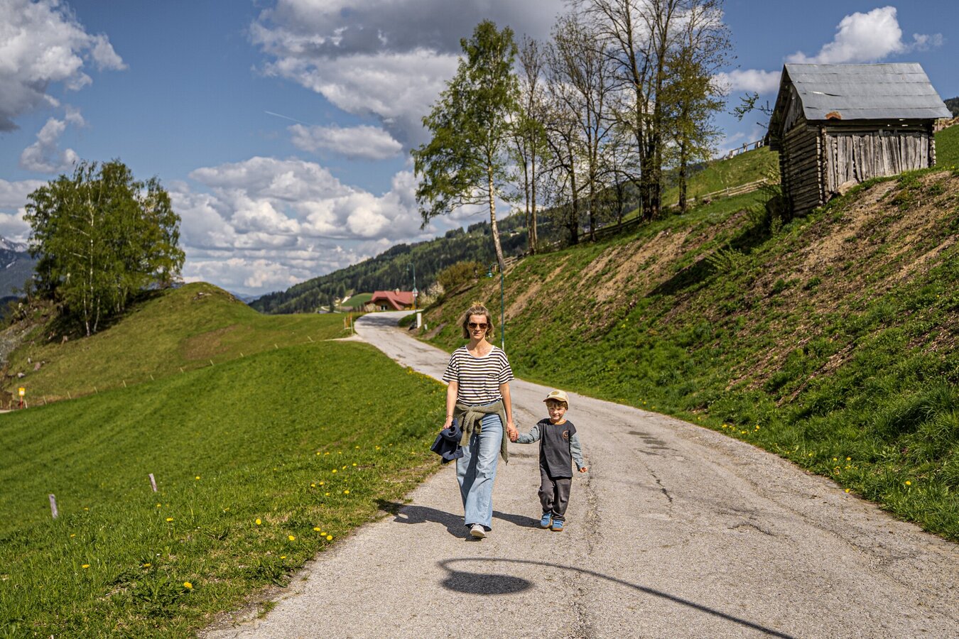 From the hiking trail head you walk pass through between hotel Stocker's Erlebniswelt and Sport Tritscher and - passing by restaurant Pariente - you follow Mosergasse road downhill. At Pension Wiesenegg you make a left and follow Wiesenweg road until you reach Schererhof farm. Pass by left of the stable and continue uphill through the forest to the trail junction at "Reiterkreuz". Make a left and follow Reiterkreuzweg road back to the starting point.